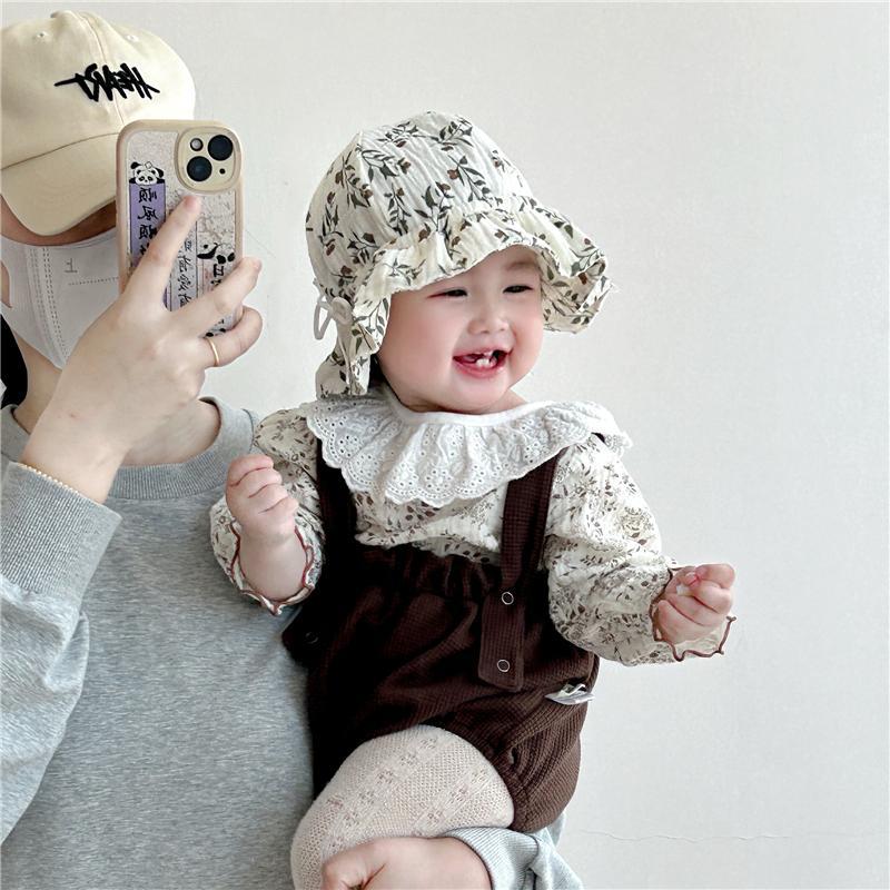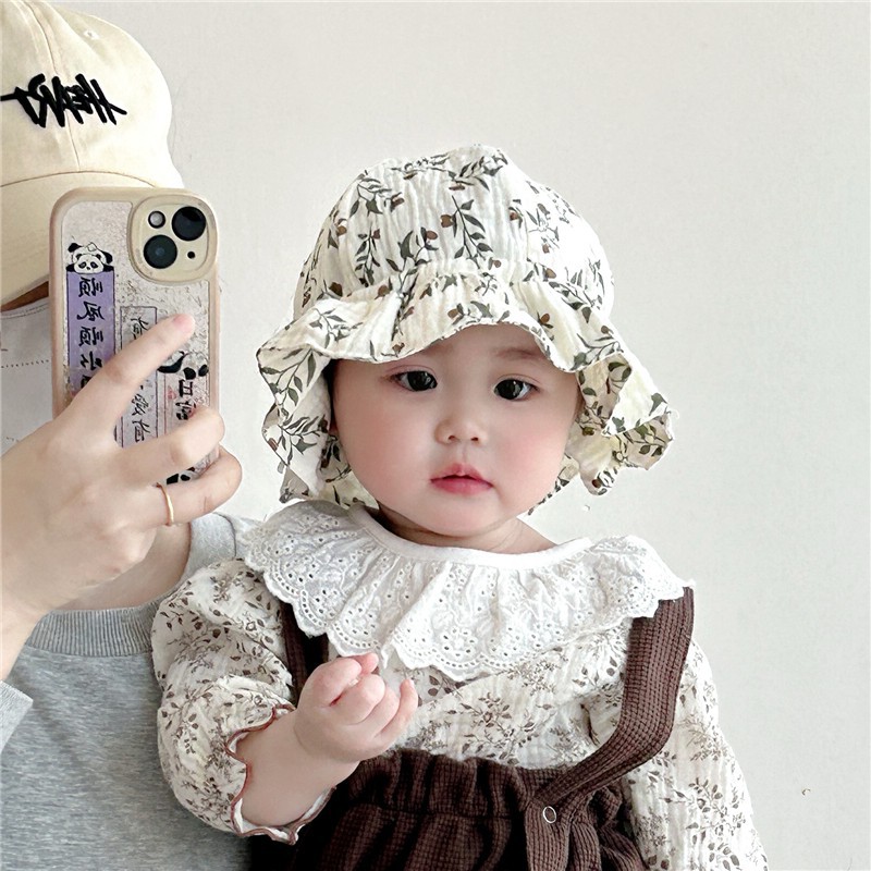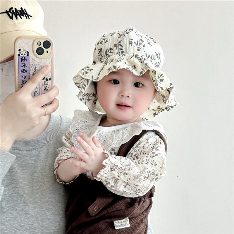 宝宝帽子春秋季婴儿渔夫帽大檐可爱超萌女宝遮阳帽新生儿盆帽薄款