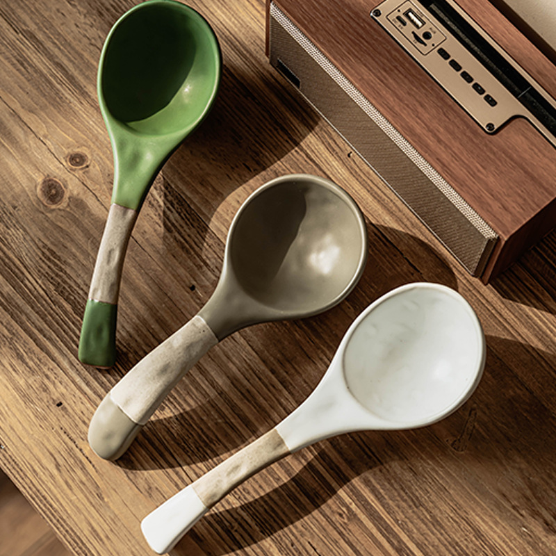 复古粗陶大勺子家用陶瓷勺汤勺景德镇大号勺批发餐具盛汤盛粥勺子