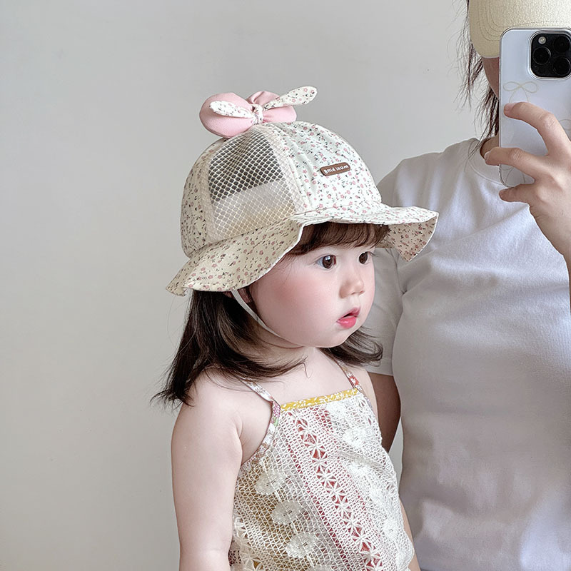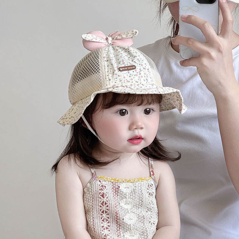 宝宝帽子夏季薄款遮阳防晒大帽檐渔夫帽女童出游透气网眼公主盆帽