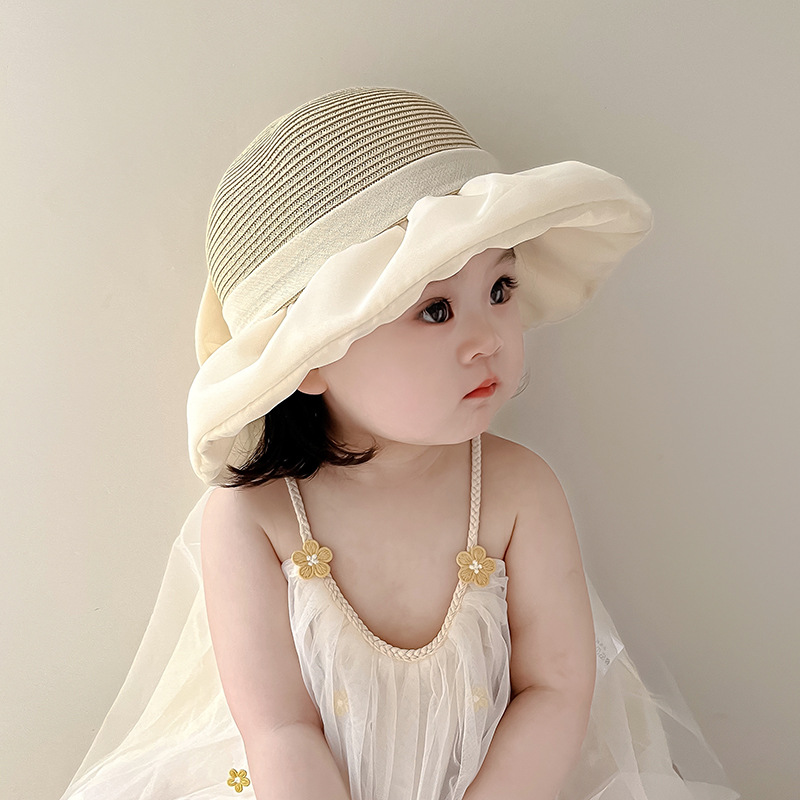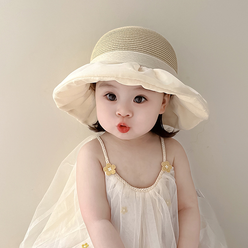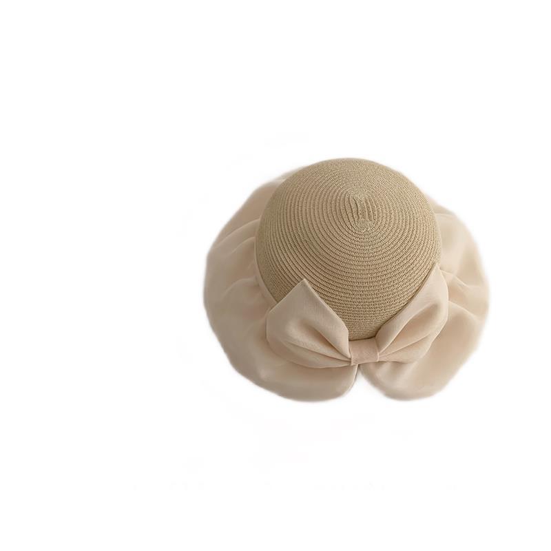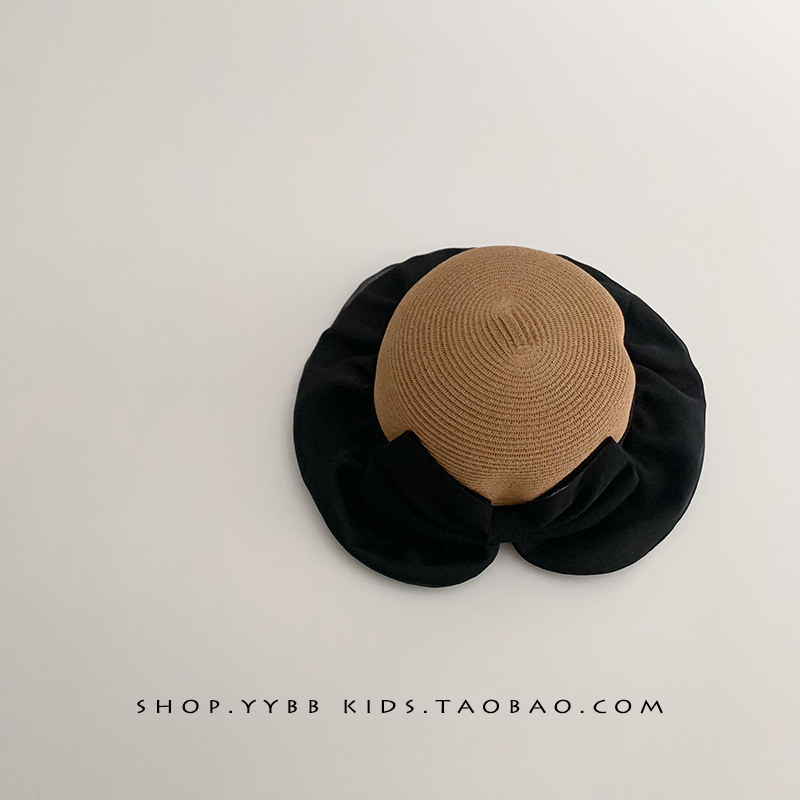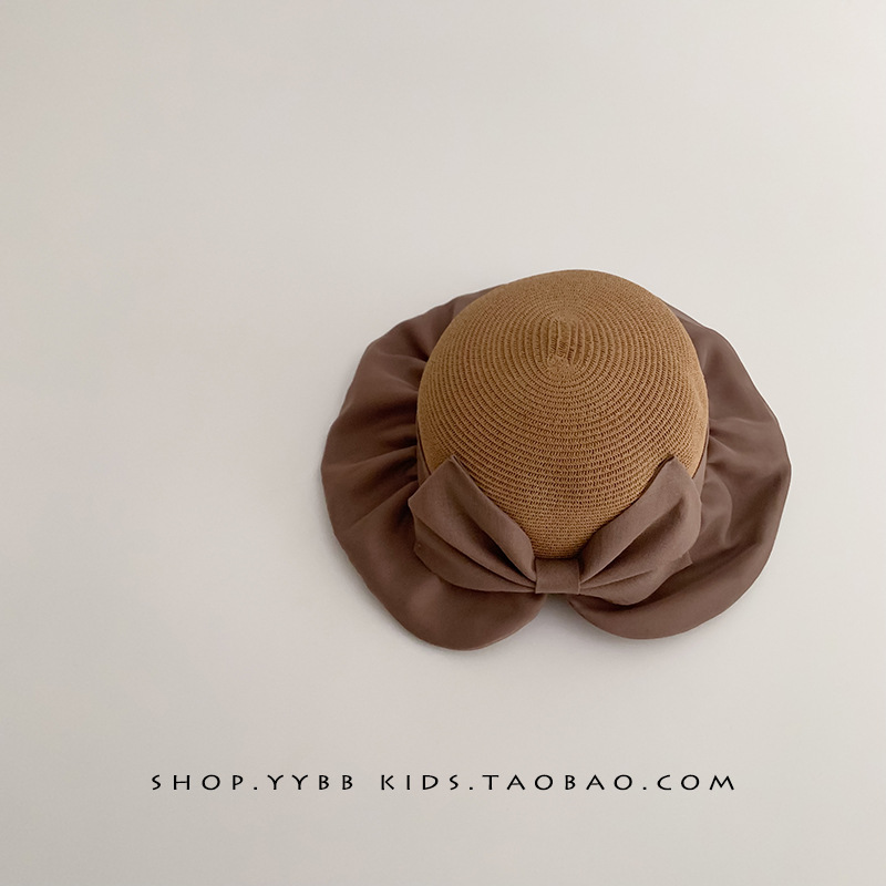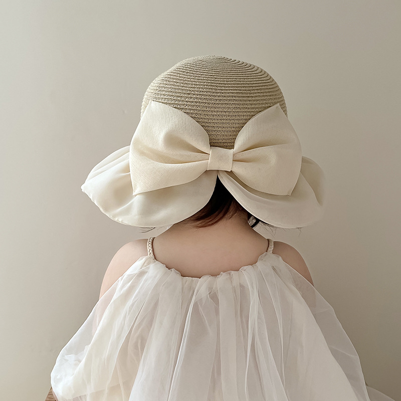 儿童防晒帽子夏季甜美遮阳沙滩大檐帽女宝宝出游可爱蝴蝶结草帽春
