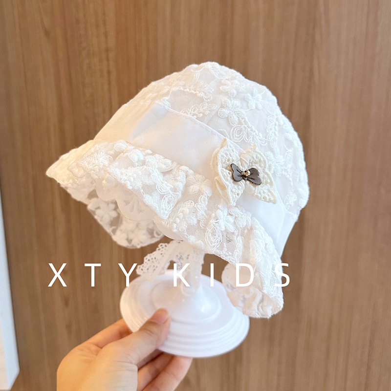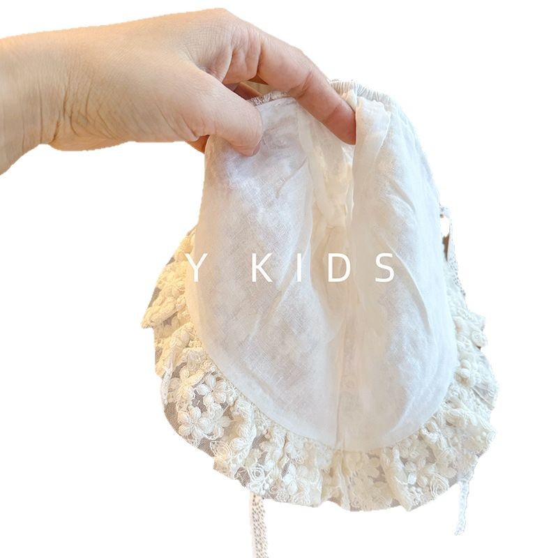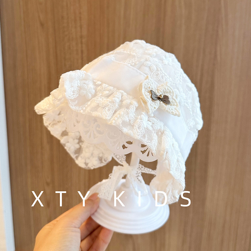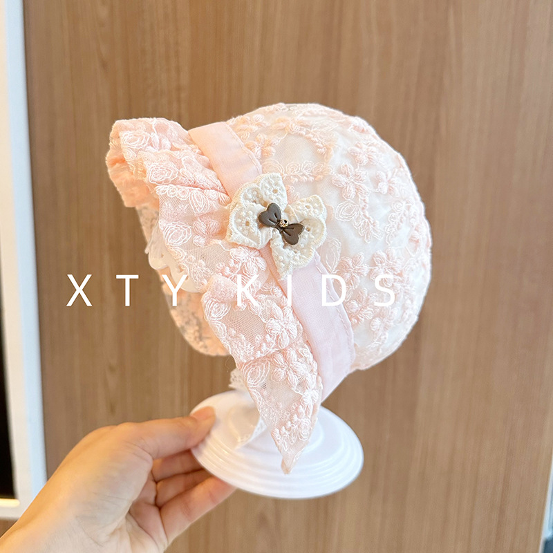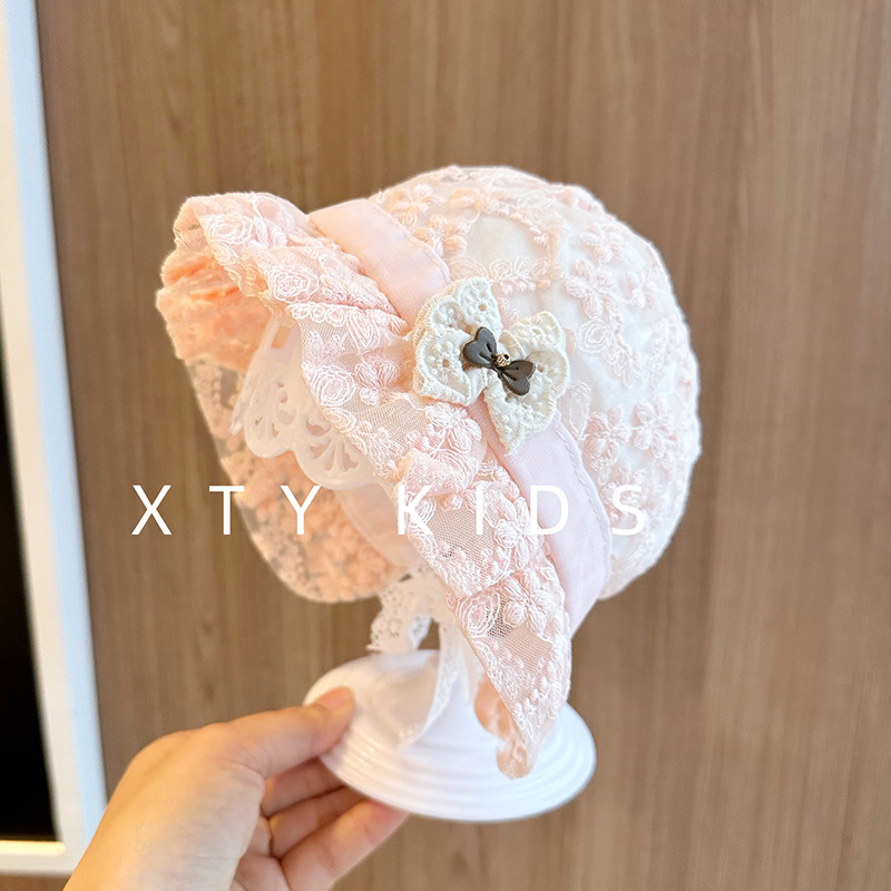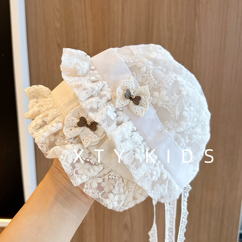 洋气女宝宝遮阳帽夏季薄款公主蕾丝蝴蝶结小月龄百天拍照婴儿帽子