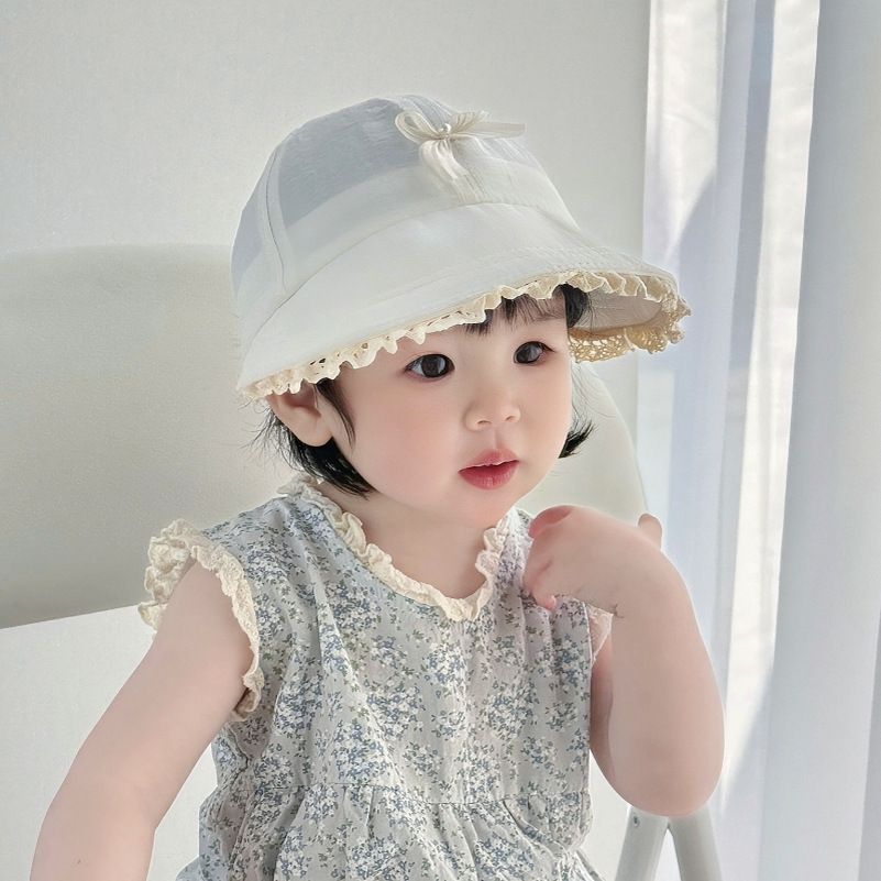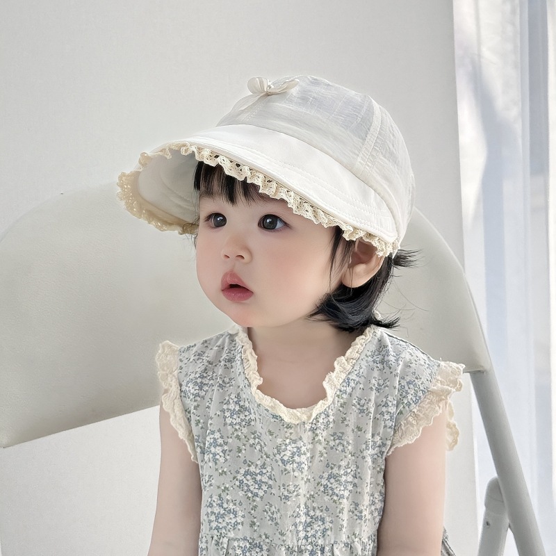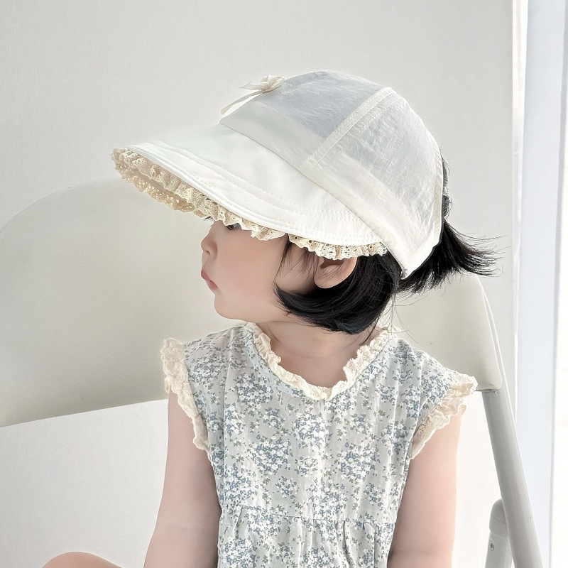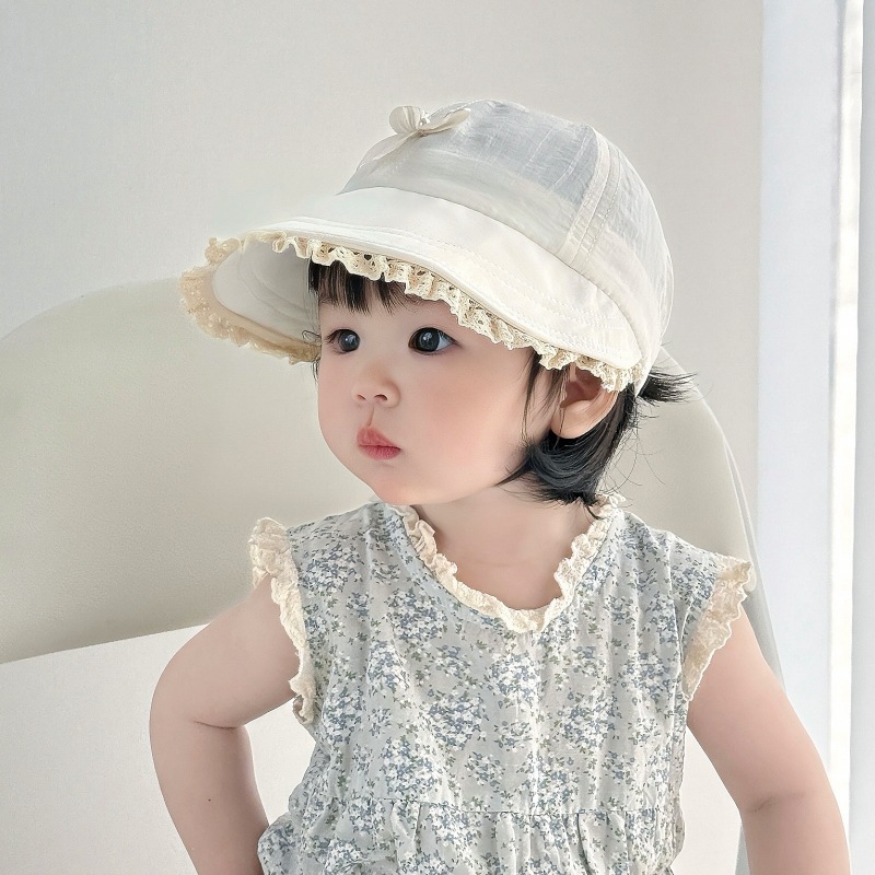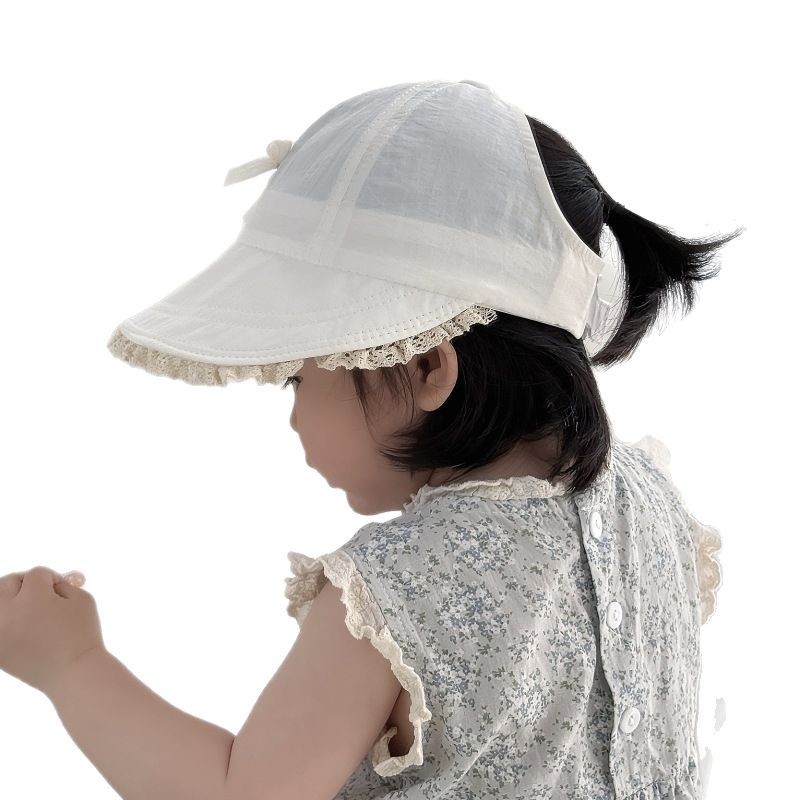 女宝宝遮阳帽春夏季蝴蝶结花边婴儿空顶鸭舌帽速干儿童防晒棒球帽