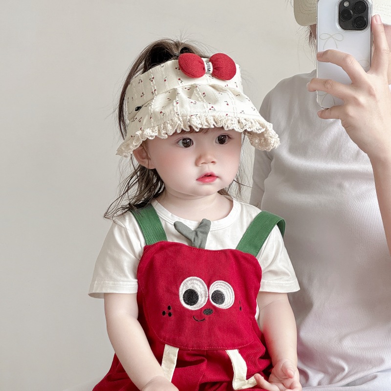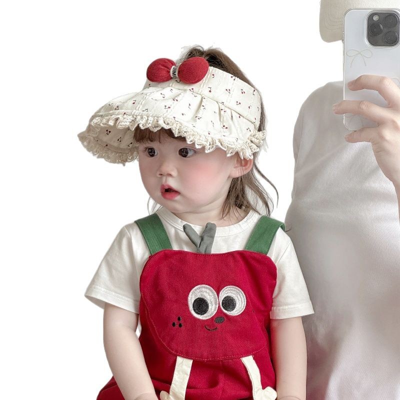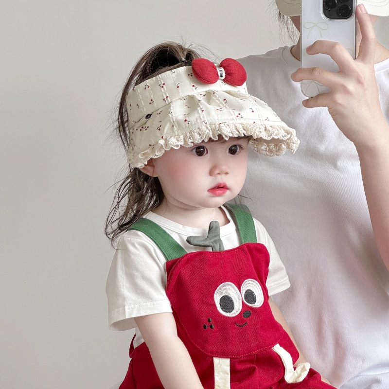 婴儿遮阳帽夏天甜美樱桃太阳帽大帽檐宝宝空顶帽户外儿童防晒凉帽