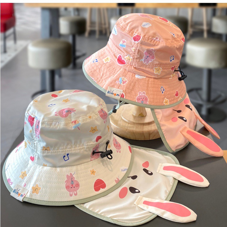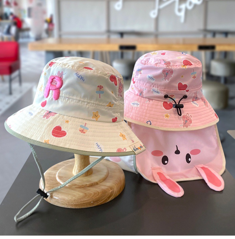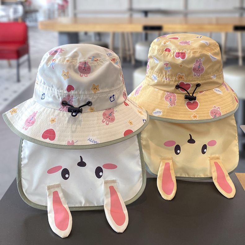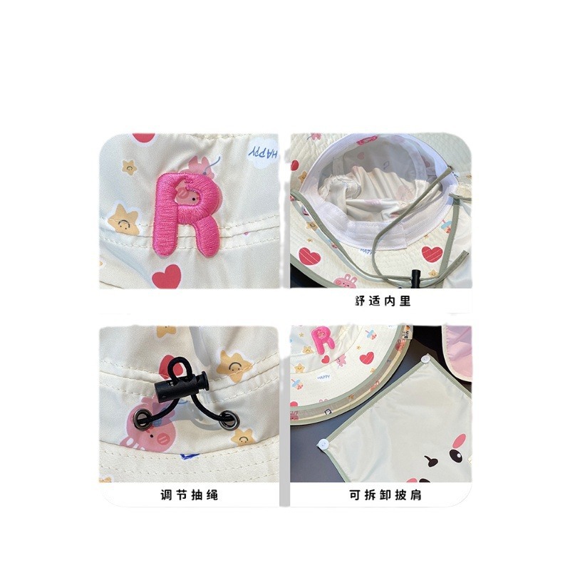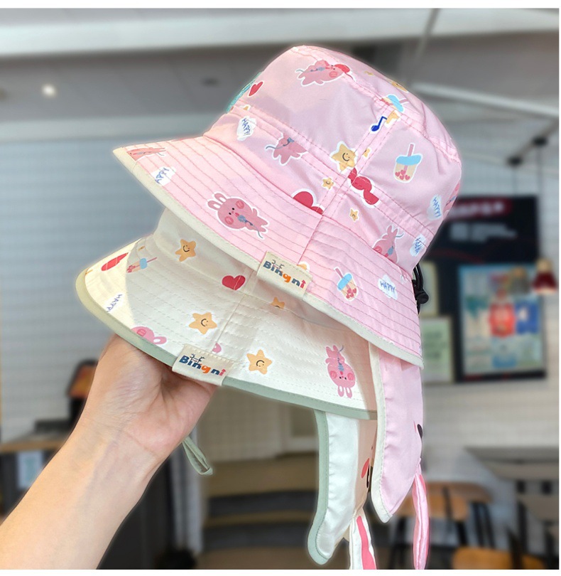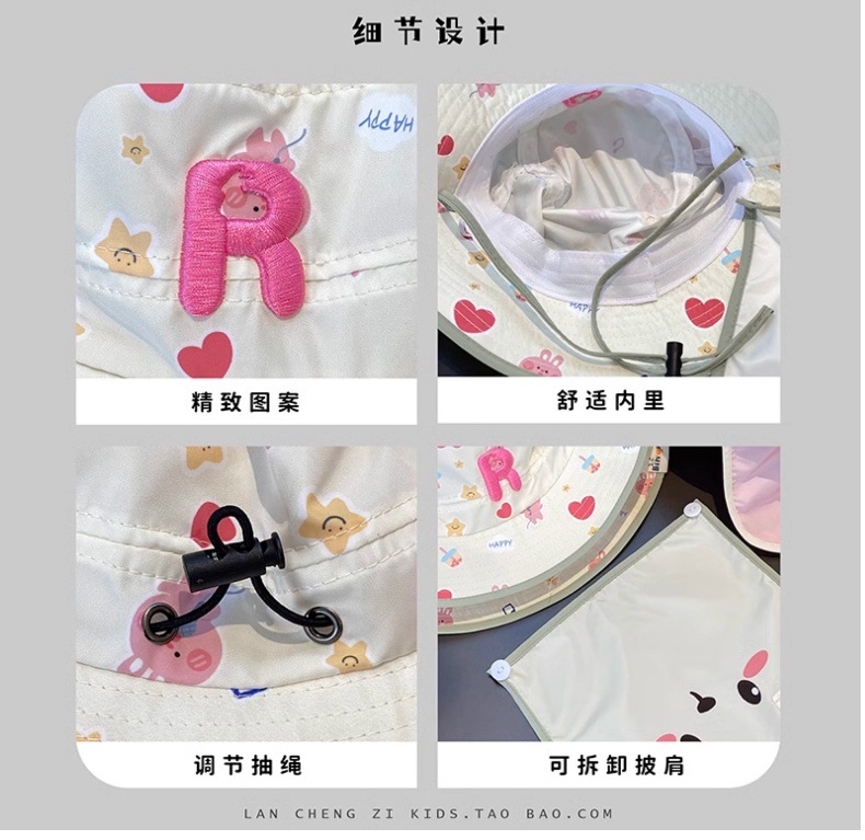 儿童帽子春夏季薄款大檐遮阳防晒披肩帽男女童出游沙滩宝宝渔夫帽