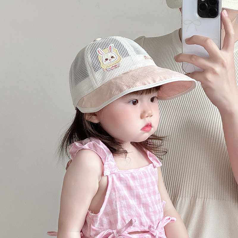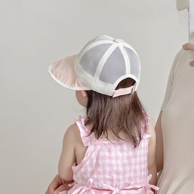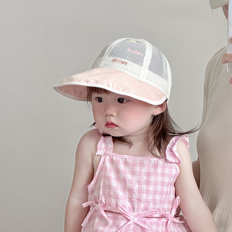 女童帽子夏季薄款透气网眼大帽檐鸭舌帽女宝宝甜美遮阳防晒棒球帽
