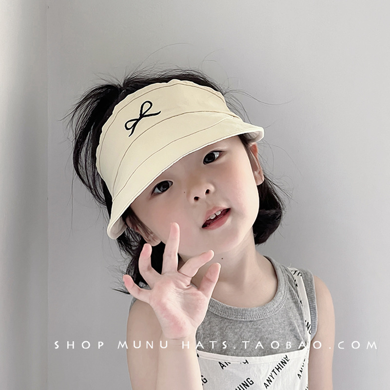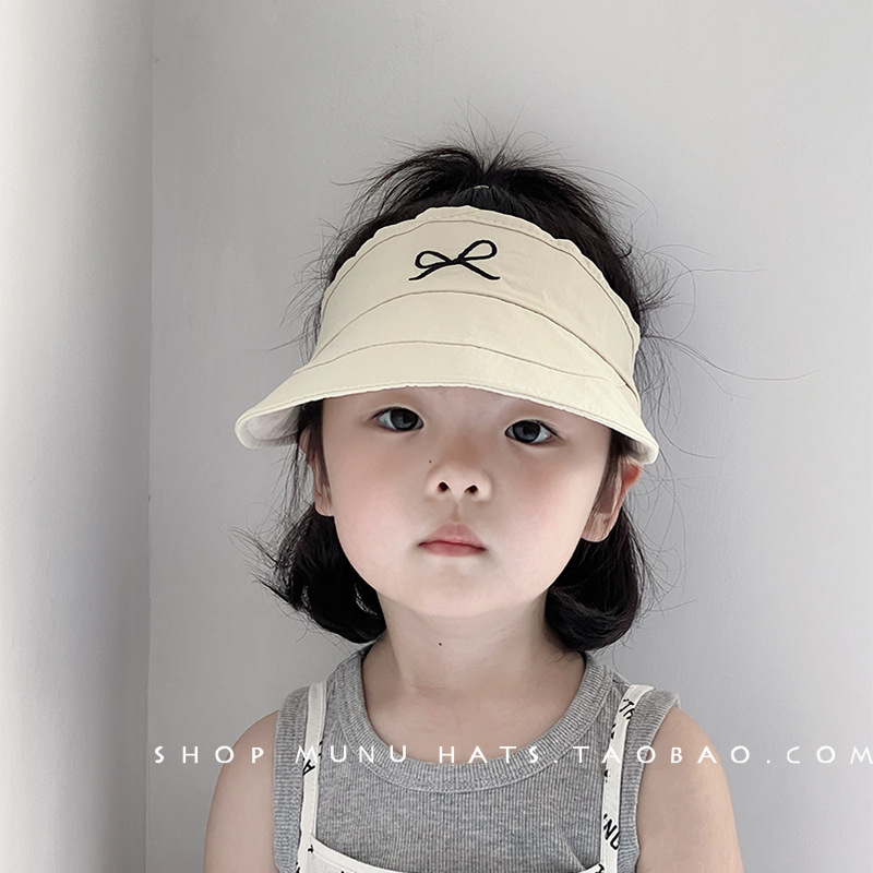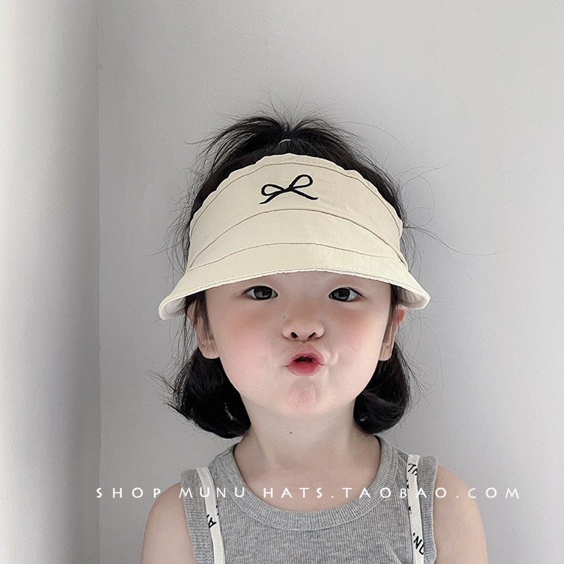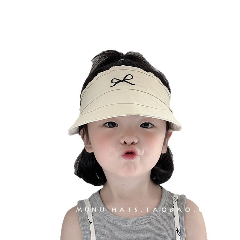 宝宝帽子夏韩版蝴蝶结空顶帽洋气大檐遮阳帽儿童防晒帽出游太阳帽