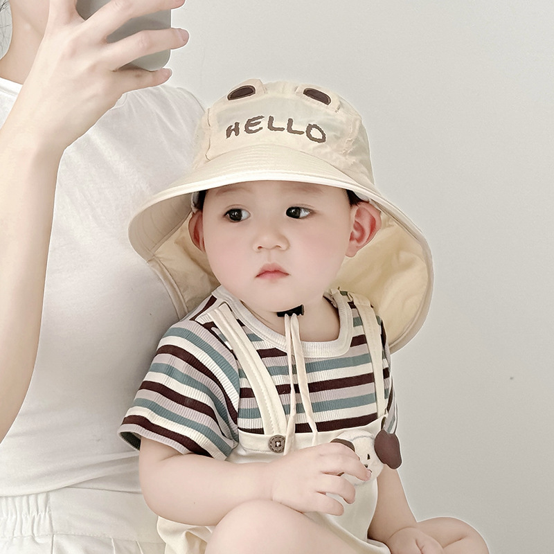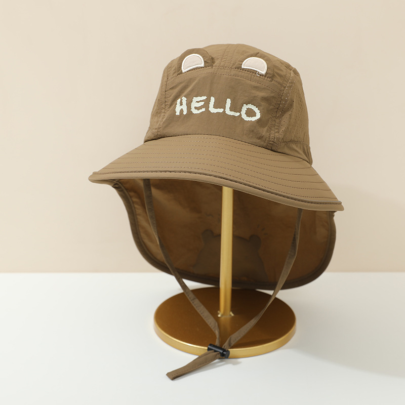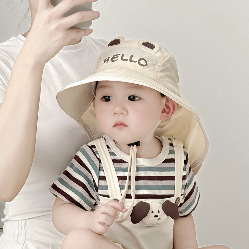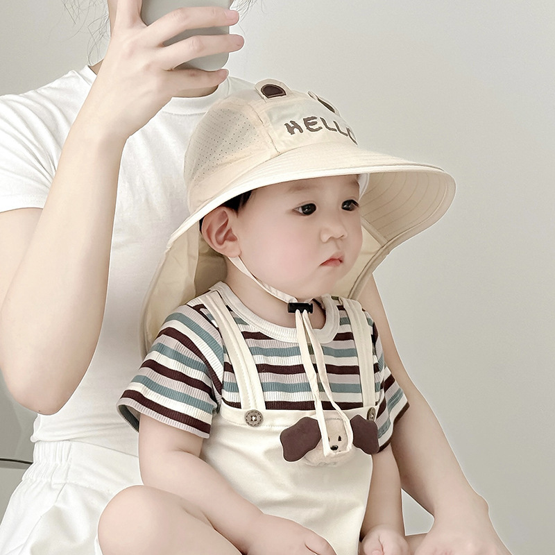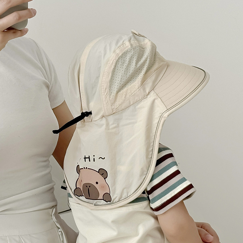 儿童帽子春夏季薄款速干大帽檐披肩帽男女宝宝遮阳防晒护脖渔夫帽