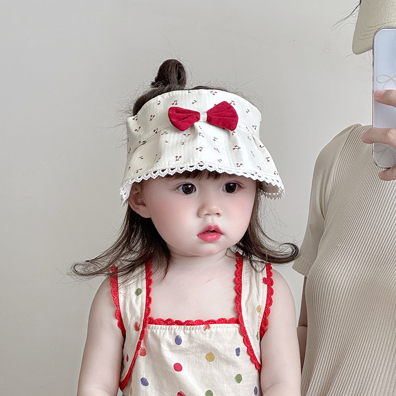 韩系宝宝帽子夏季薄款遮阳防晒鸭舌空顶帽女童出游甜美公主太阳帽