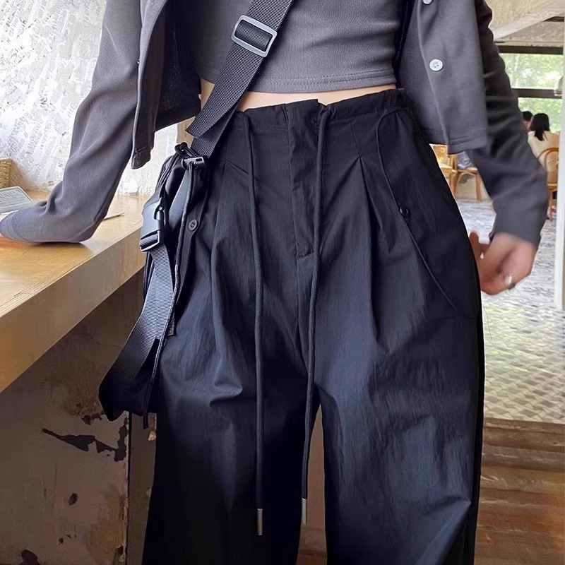 黑色工装裤女新款夏天降落伞裤美式户外冲锋裤宽松阔腿裤