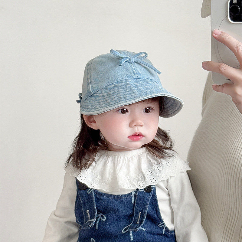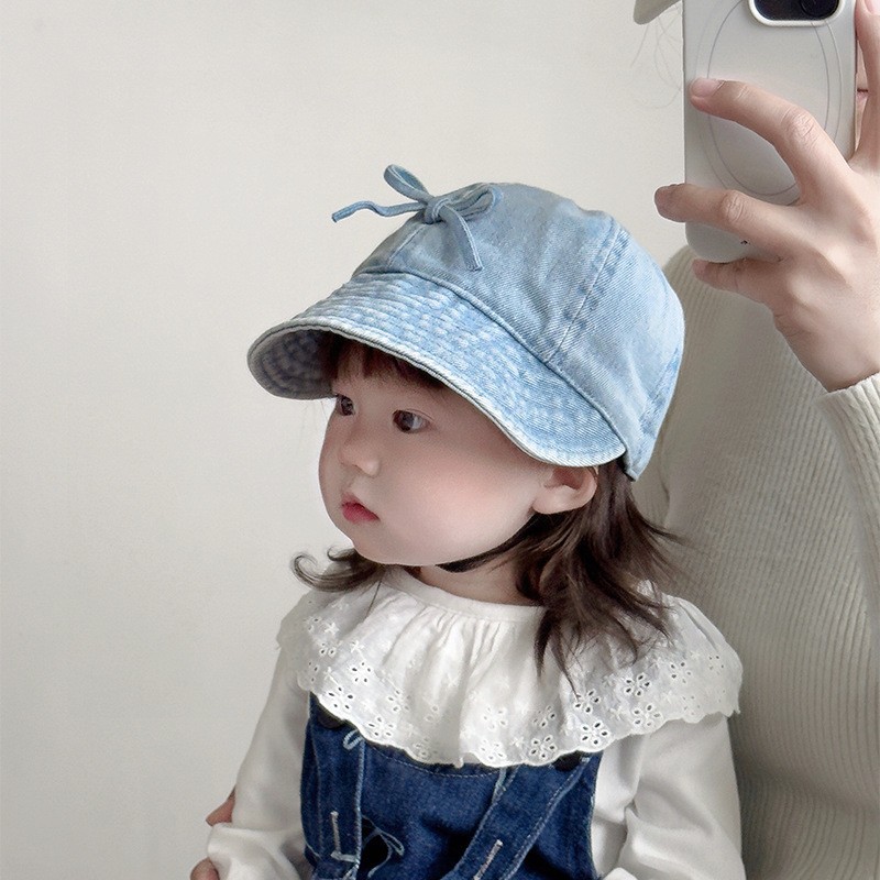 儿童帽子春秋款牛仔鸭舌帽大檐韩版蝴蝶结棒球帽宝宝出游遮阳帽潮