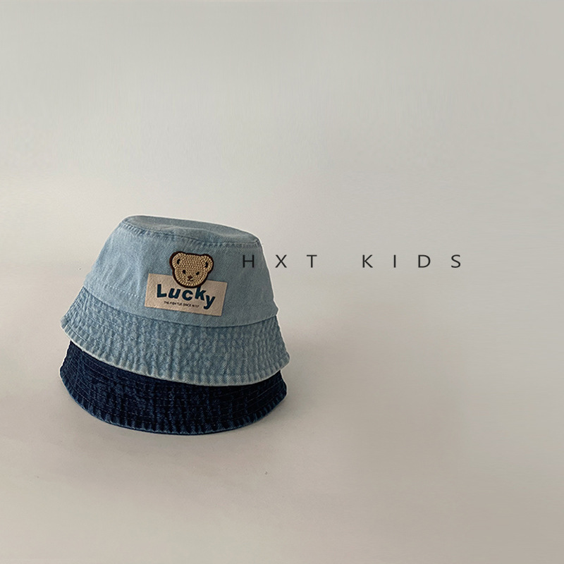 婴儿水桶帽春秋季超萌可爱小熊牛仔遮阳帽子小童宝宝户外渔夫帽春