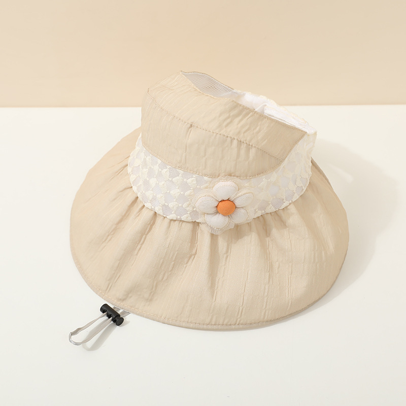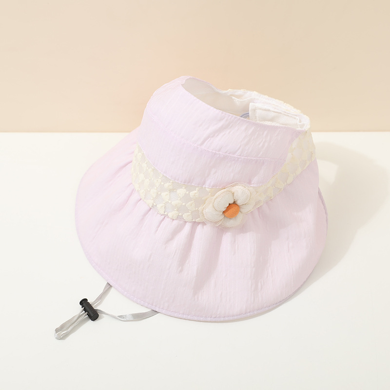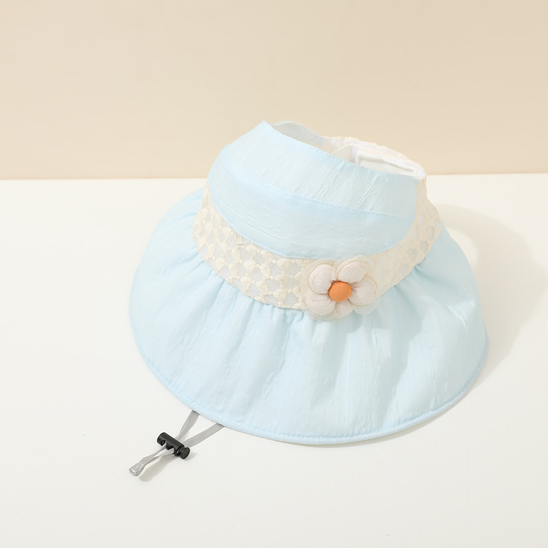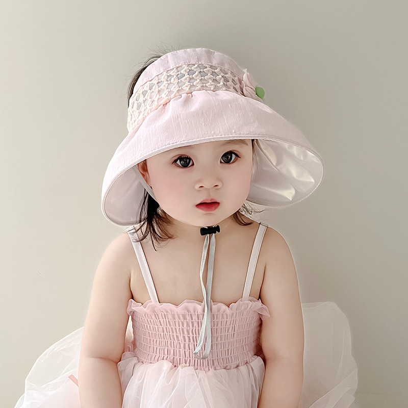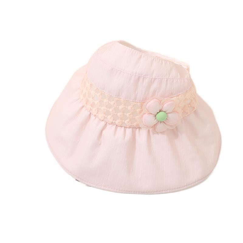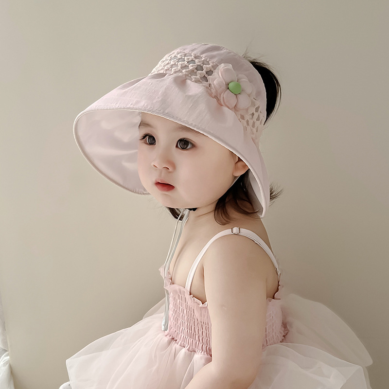 儿童帽子夏季薄款大帽檐遮阳防紫外线空顶帽韩版花朵女宝宝太阳帽