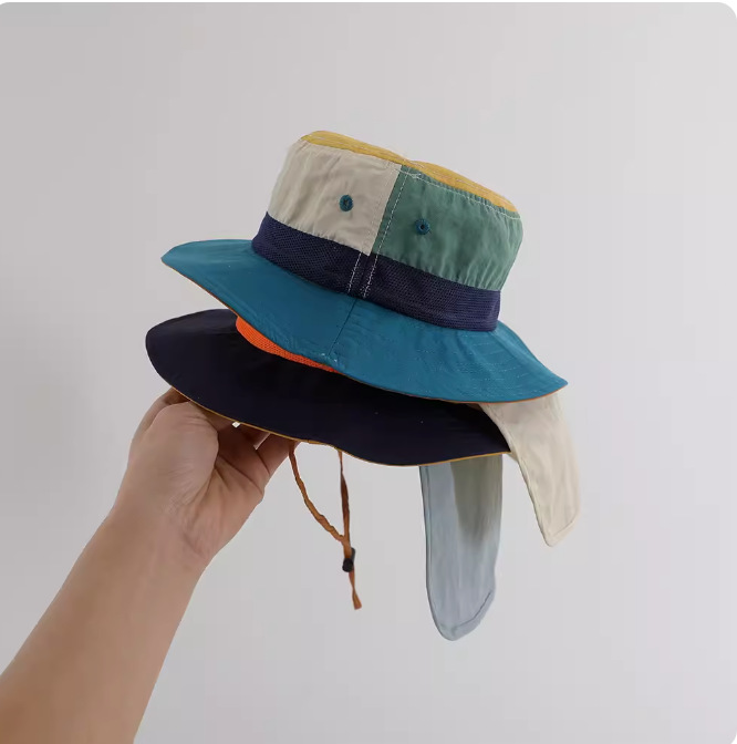 儿童防晒帽男童遮阳帽宝宝帽子夏季太阳帽女童渔夫帽速干护颈春秋