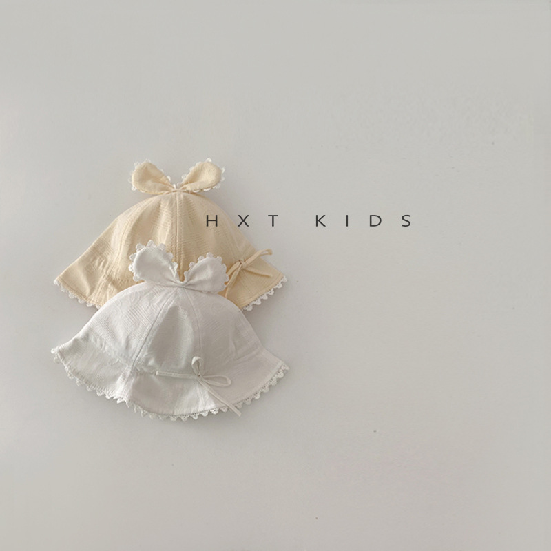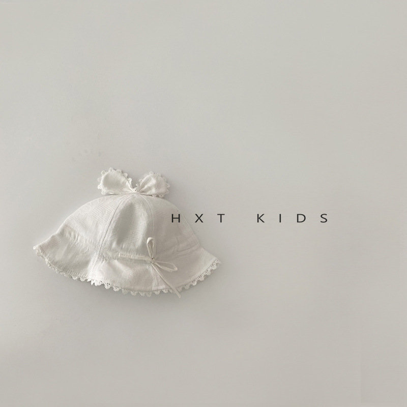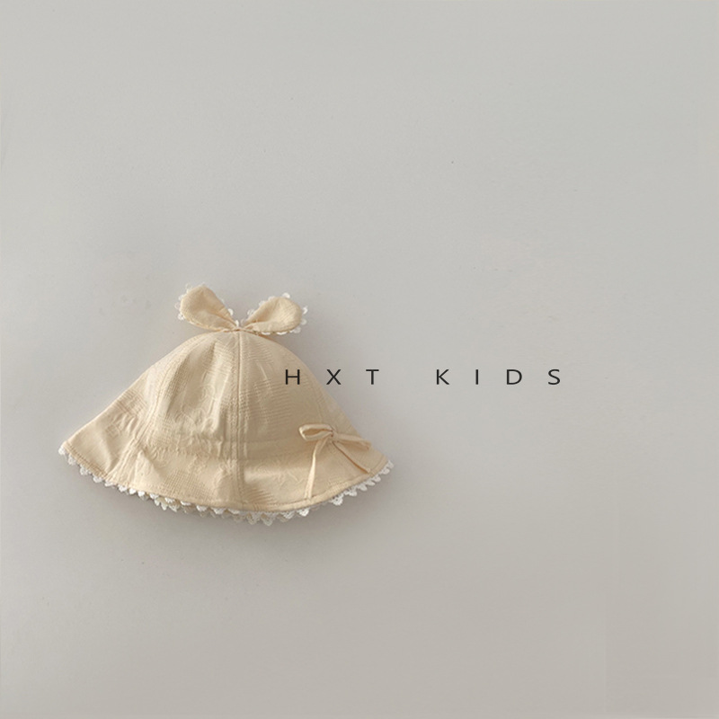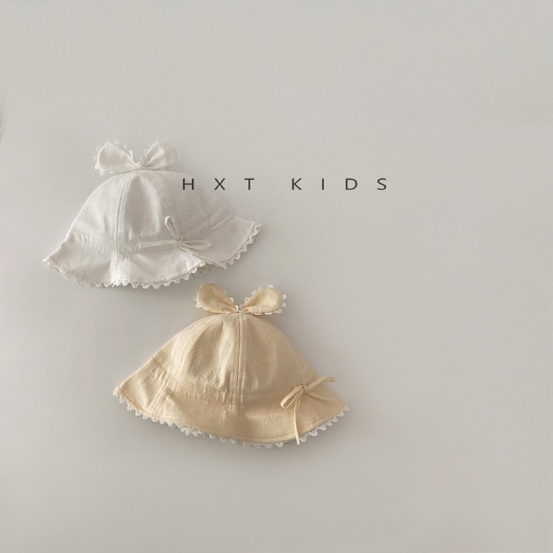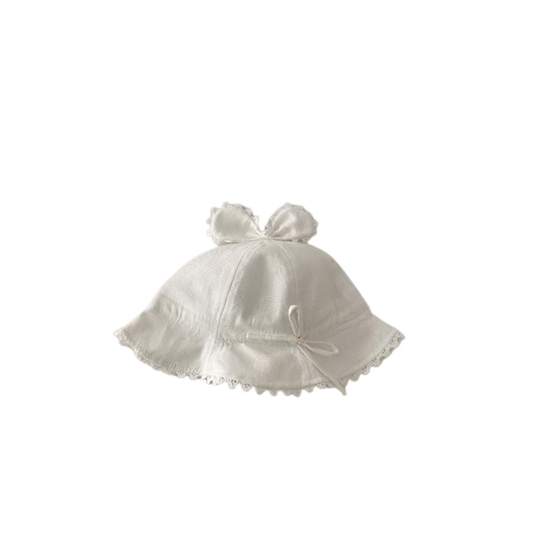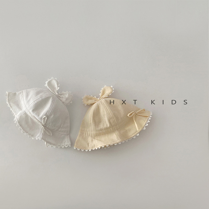 婴儿防晒帽夏季薄款花边蝴蝶结抽绳调节渔夫帽女宝宝春秋遮阳帽子