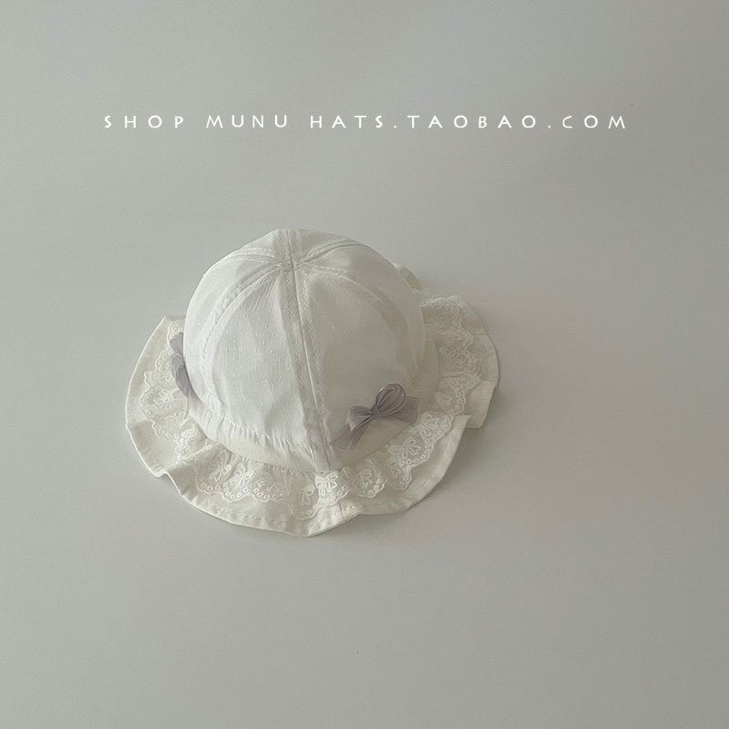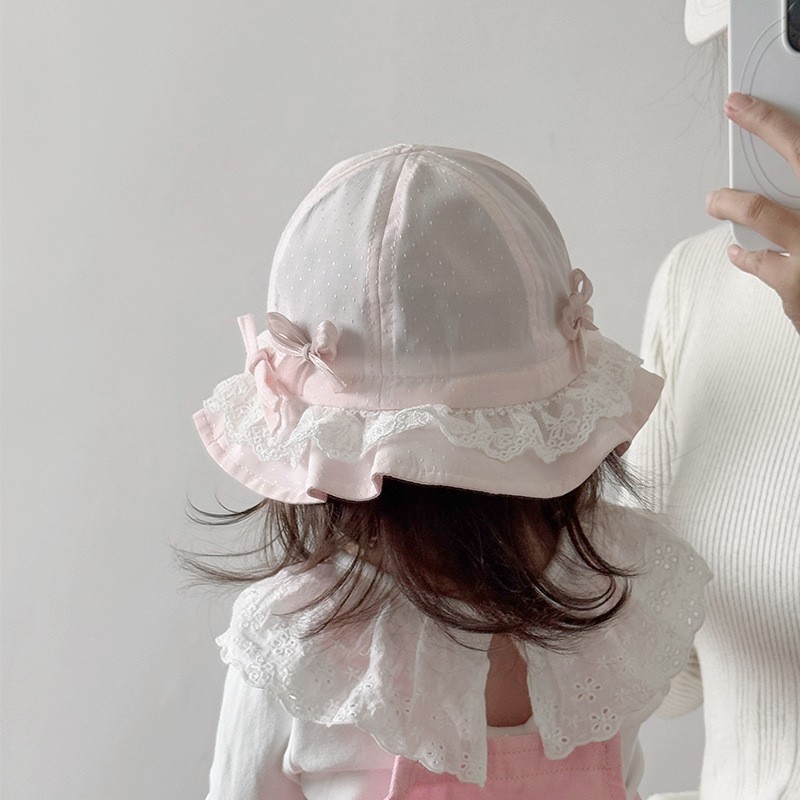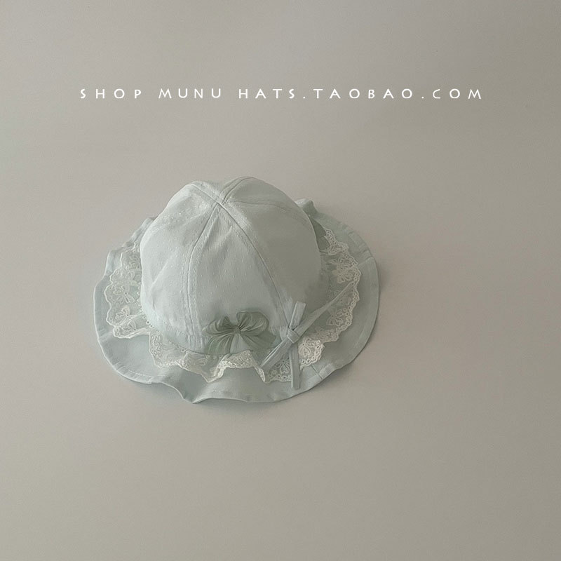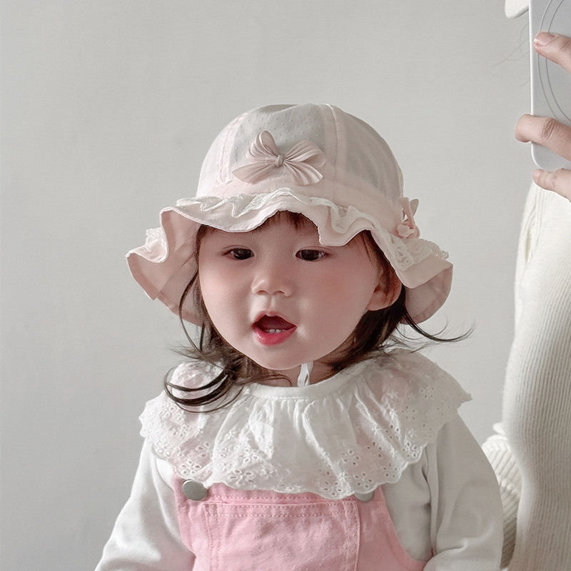 宝宝帽子春夏款渔夫帽可爱韩版甜美蝴蝶结蕾丝公主帽婴幼儿防晒帽