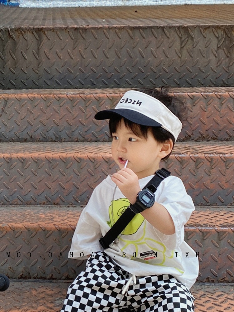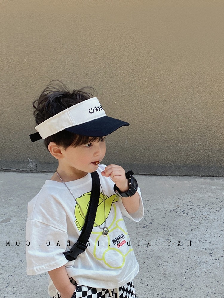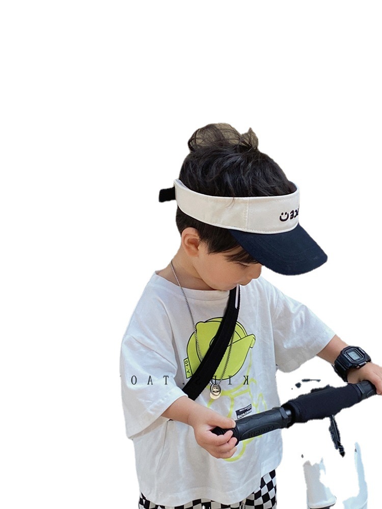 宝宝帽子夏天空顶鸭舌帽小笑脸刺绣儿童运动韩版无顶棒球帽潮
