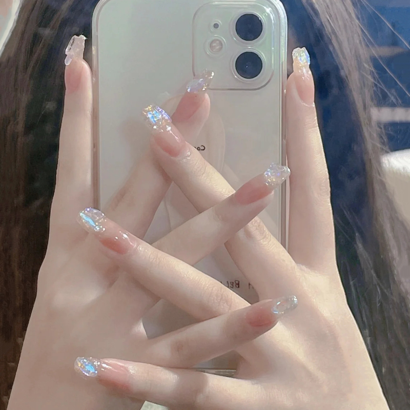 温精灵同款手工穿戴甲秋冬新娘透裸色美甲成品贴片高级定制甲片