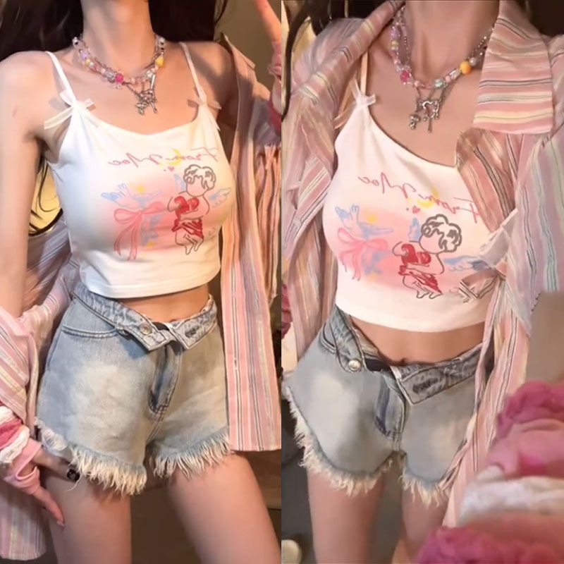 甜辣妹超好看卡通字母吊带背心女夏季短款修身显瘦气质百搭上衣潮