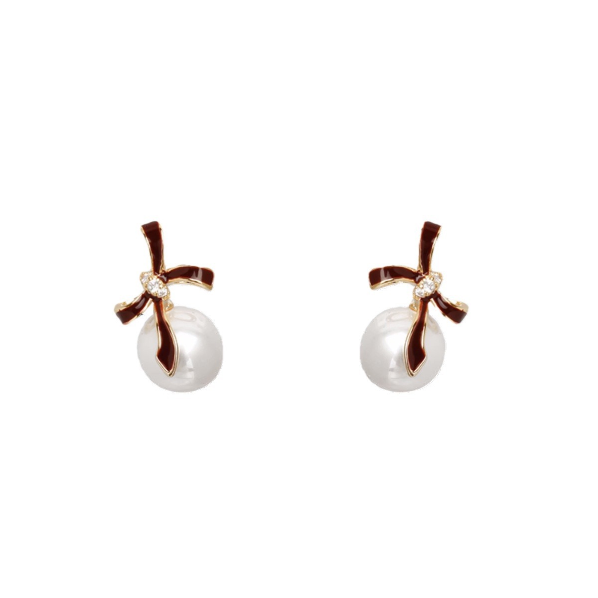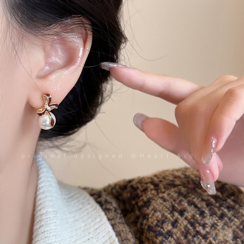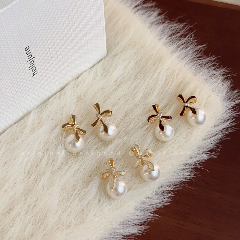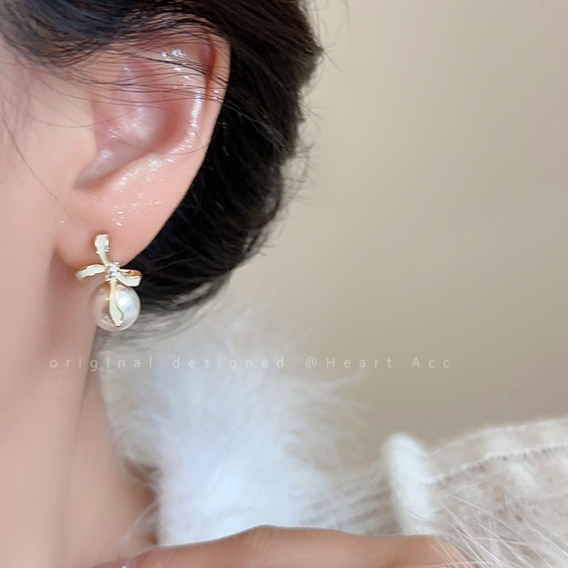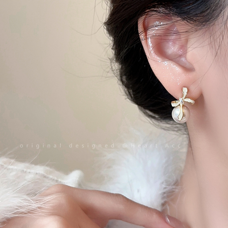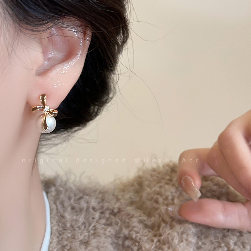 优雅蝴蝶结珍珠耳环女法式独特高级感精致耳钉年新款轻奢耳饰
