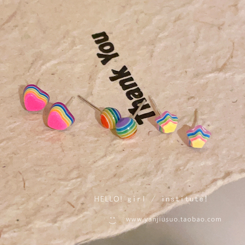 彩虹糖果星星爱心耳钉女夏季独特套装耳环新款爆款高级感耳饰