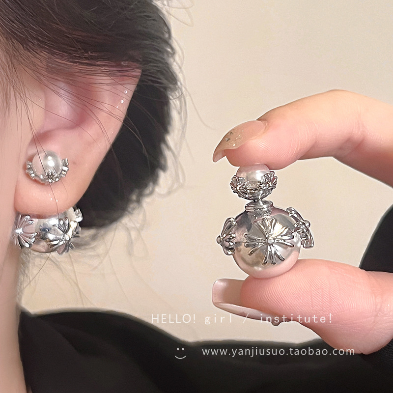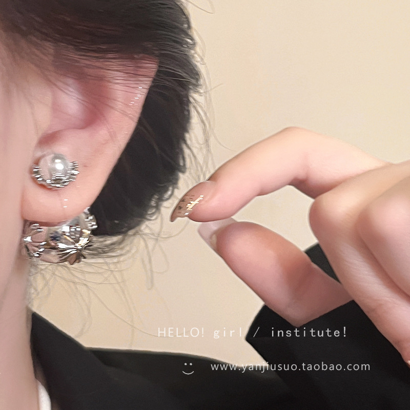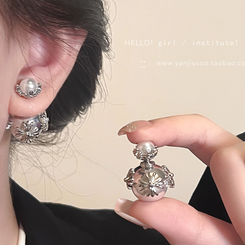 独特双面珍珠耳钉女新款洋气十字架耳环复古小众气质爆款耳饰