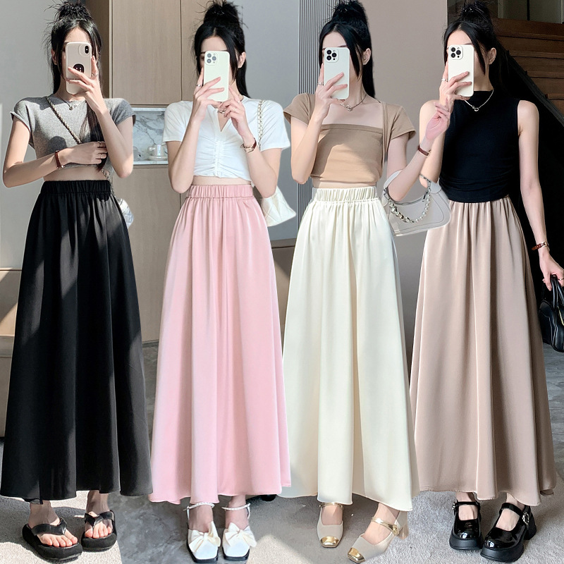 高腰显瘦醋酸缎面半身裙子春夏新款中长a字小个子高级女长裙