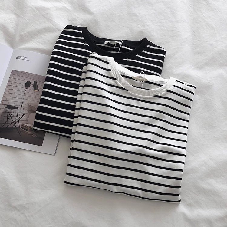 不过时基础款!百搭宽松显瘦条纹长袖打底衫上衣女春秋宽松T恤