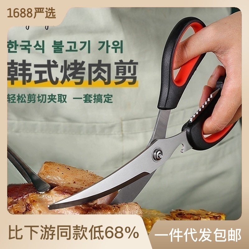 不锈钢烤肉牛排多用剪刀厨房家用餐厅烧烤便捷夹子韩国烤肉剪套装