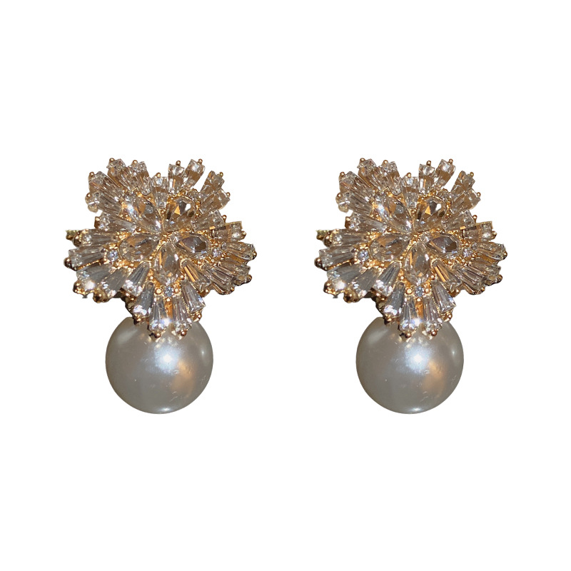 冬日恋歌~圣诞满钻雪花珍珠耳环小众设计高级感耳钉轻奢复古耳饰