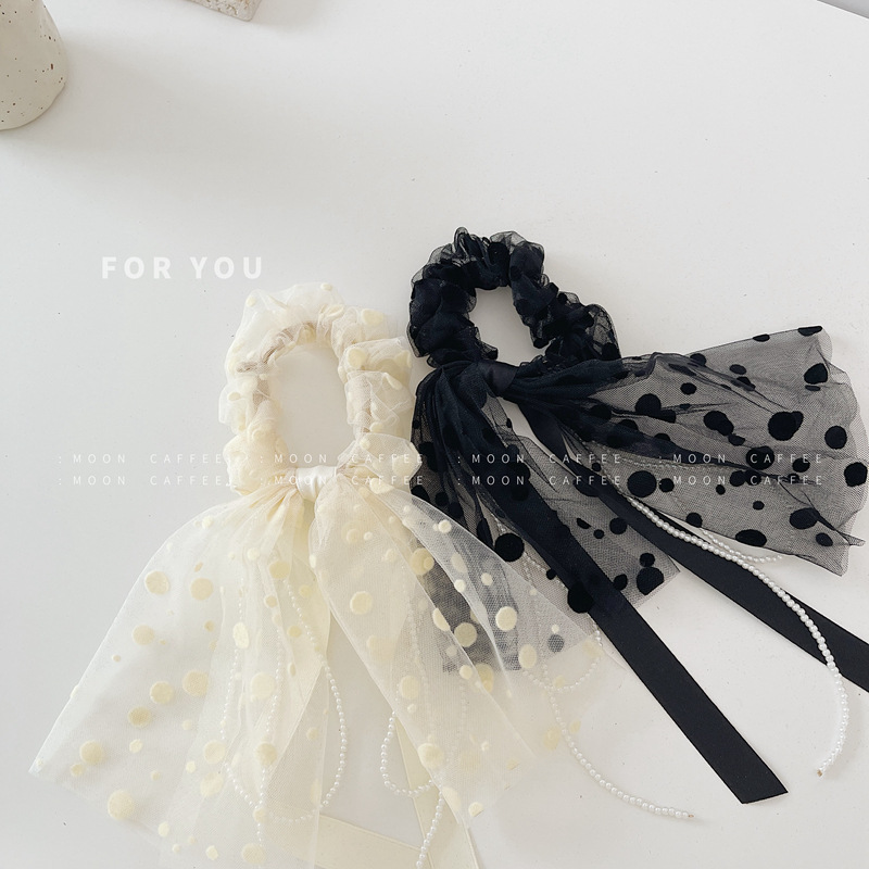 超仙网纱波点缎带蝴蝶结发圈发带女搞弹力韩国新款头绳ins潮