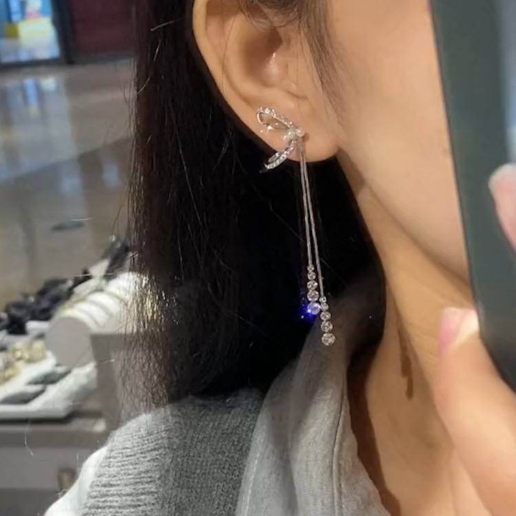 法式蝴蝶结流苏耳环女蚊香盘耳钉小众高级感气质耳钉冷淡风耳饰潮