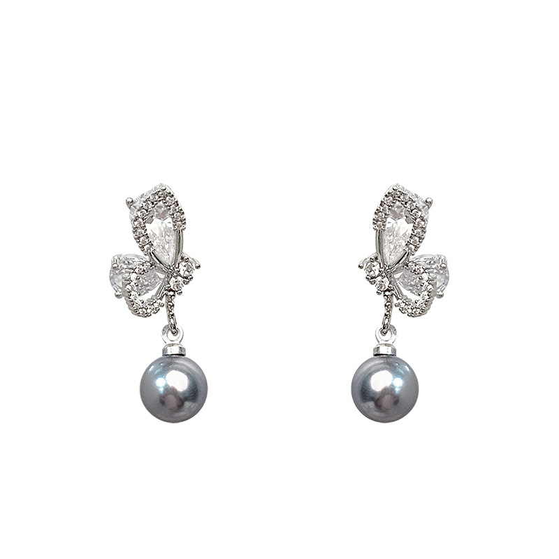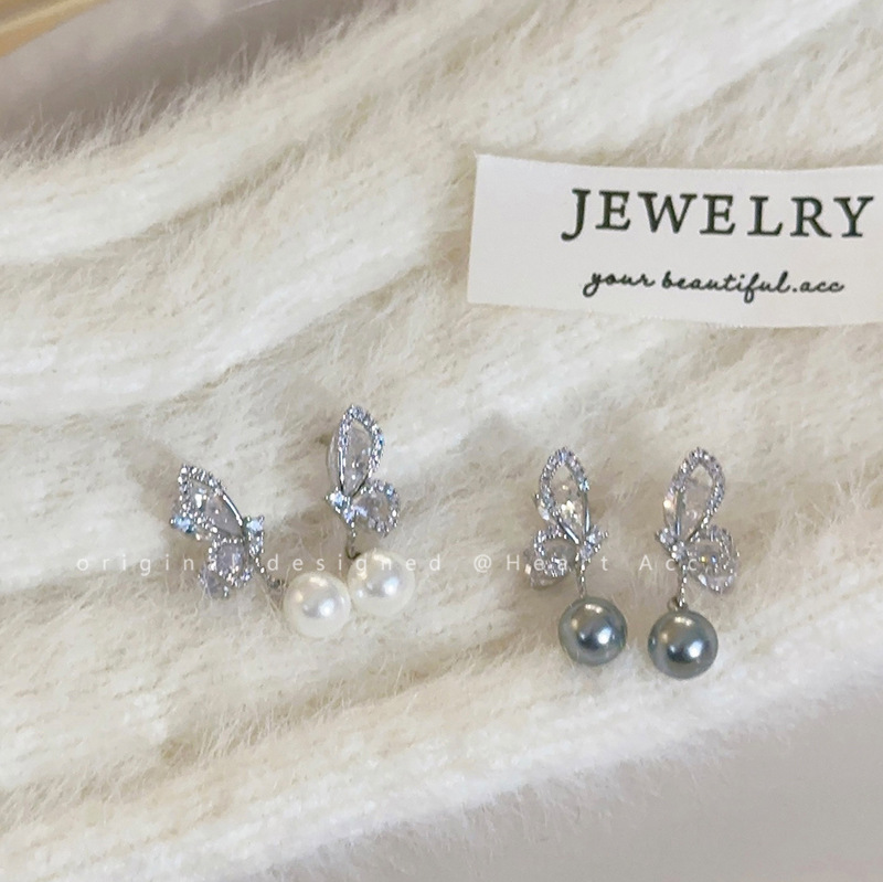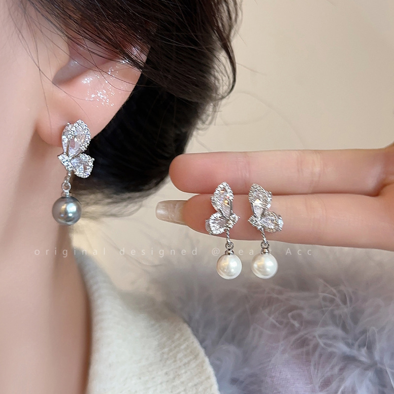 独特蝴蝶珍珠银针耳环女高级感微镶方圆脸耳钉新款设计感耳饰