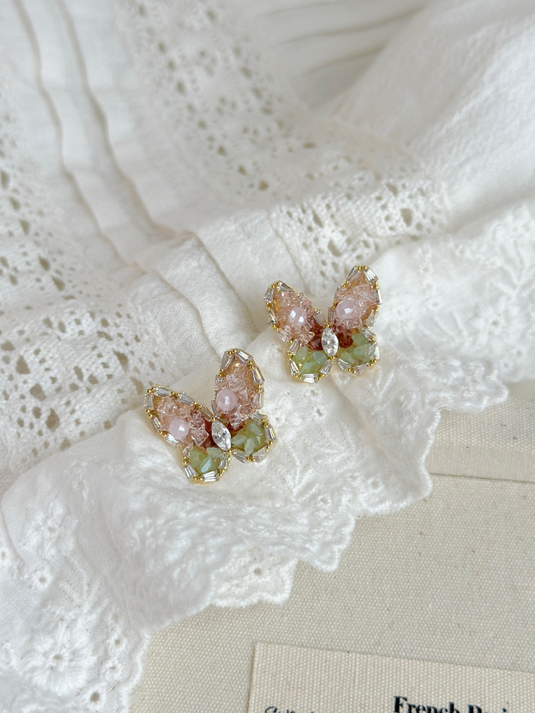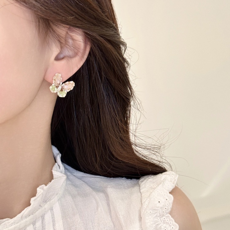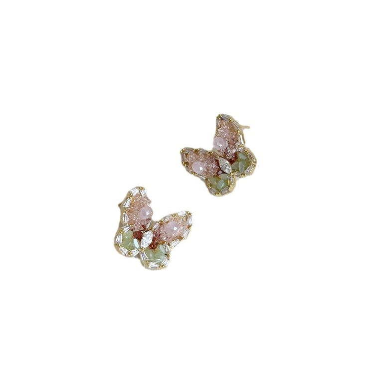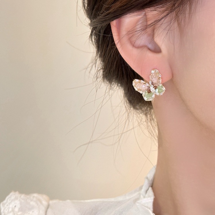 小众独特设计蝴蝶耳钉女彩色锆石精致高级感耳饰新款爆款耳环