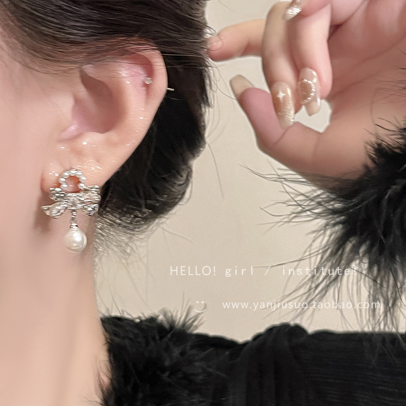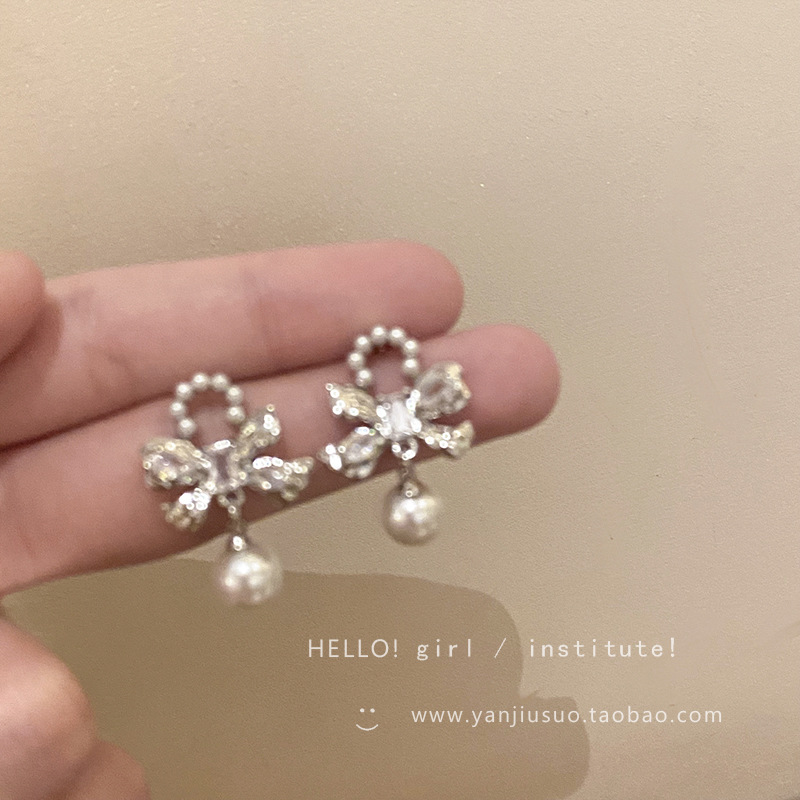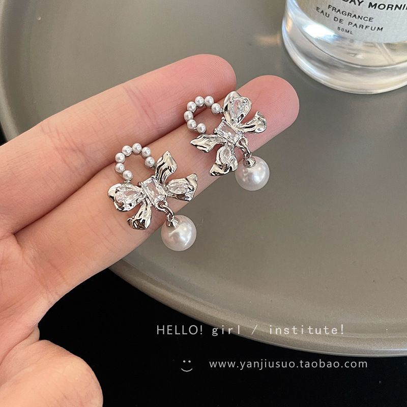 韩国精致蝴蝶结珍珠耳环新款爆款高级感耳钉轻奢网红气质耳环