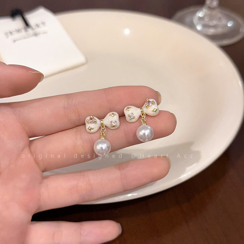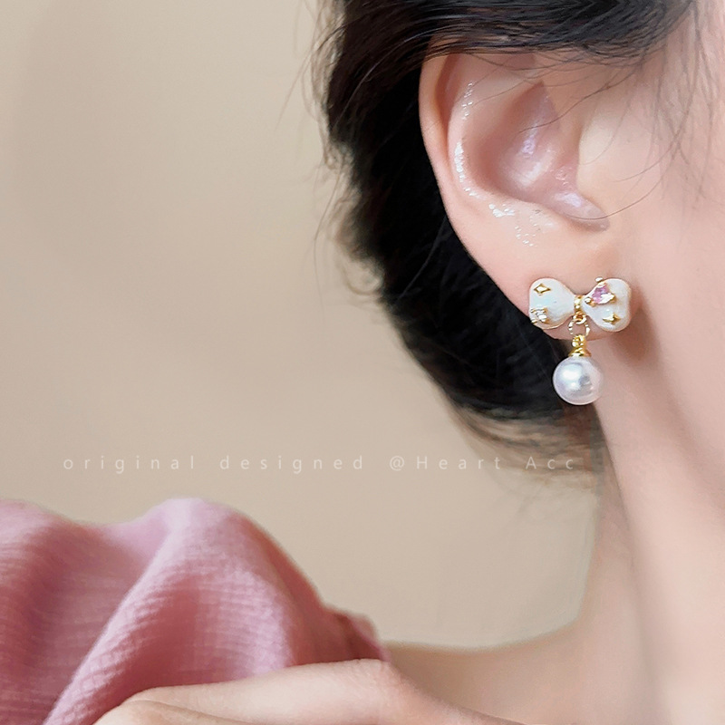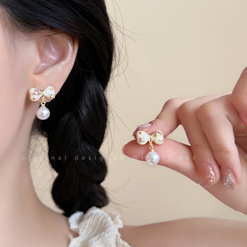 彩色蝴蝶结珍珠耳环女小众独特高级感耳钉新款夏日甜酷风耳饰