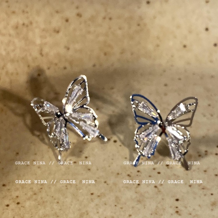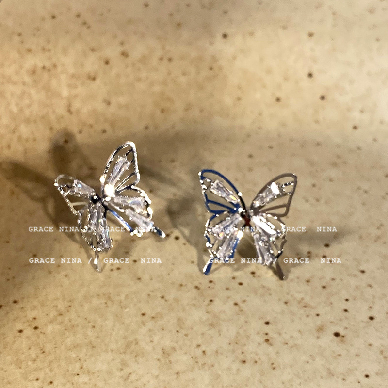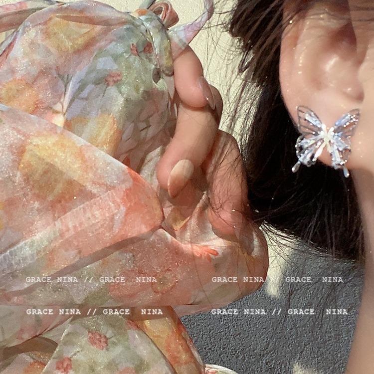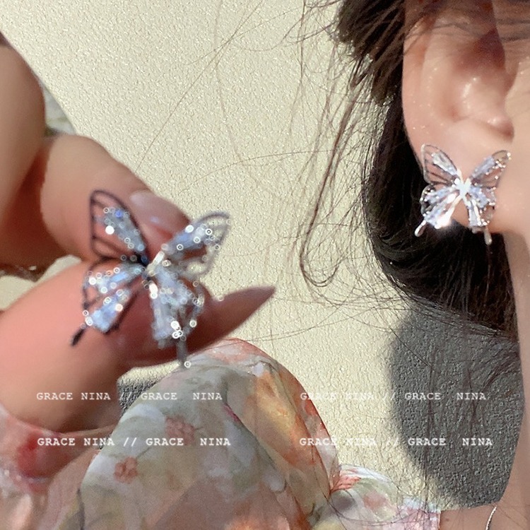 镂空锆石蝴蝶耳夹无耳洞女新款精致小众百搭耳钉轻奢高级感耳饰女