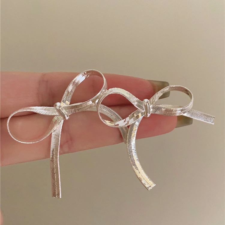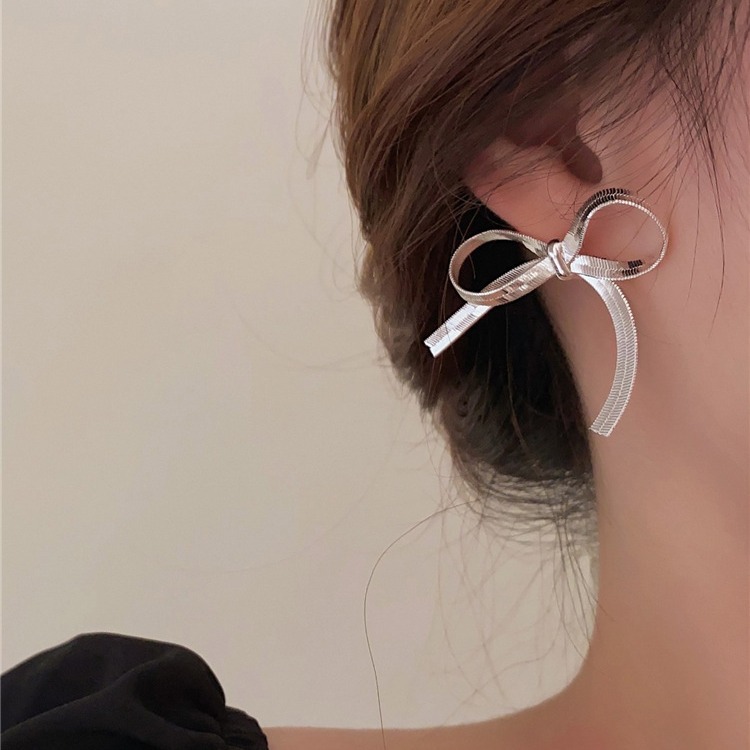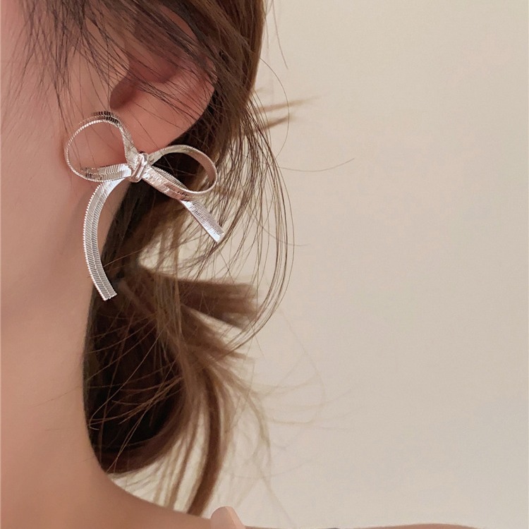 少女情书~轻奢法式复古金属链条蝴蝶结新款耳环 高级感小众设计潮