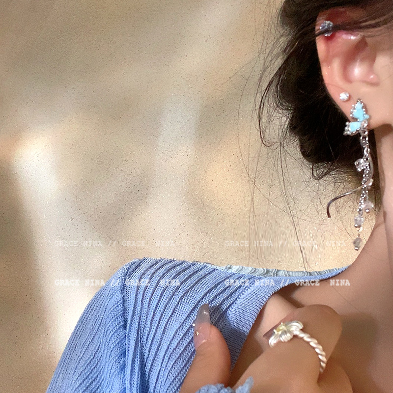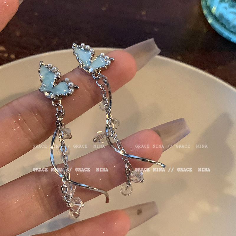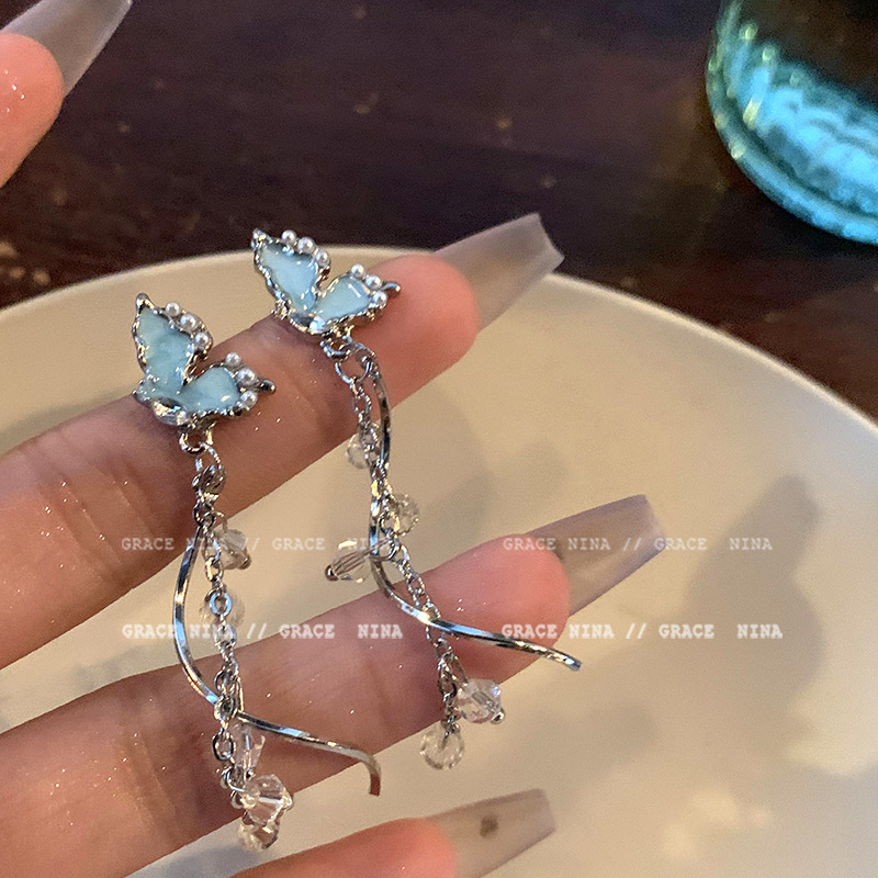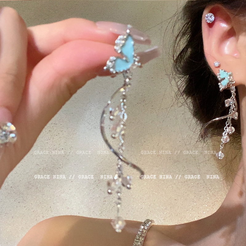 美出圈!气质蝴蝶流苏耳钉女小众独特耳环新款爆款高级感耳饰