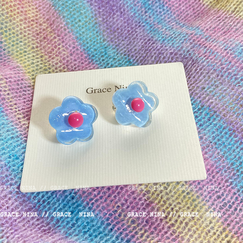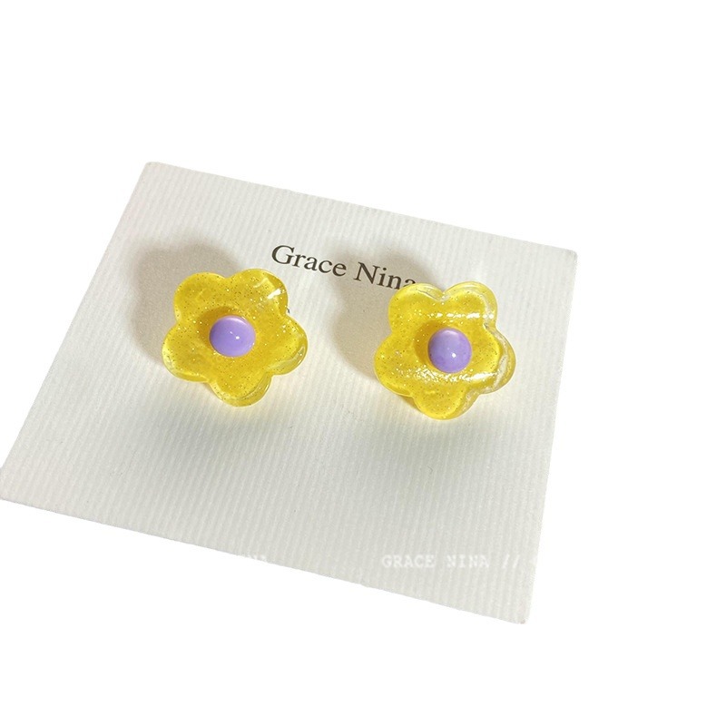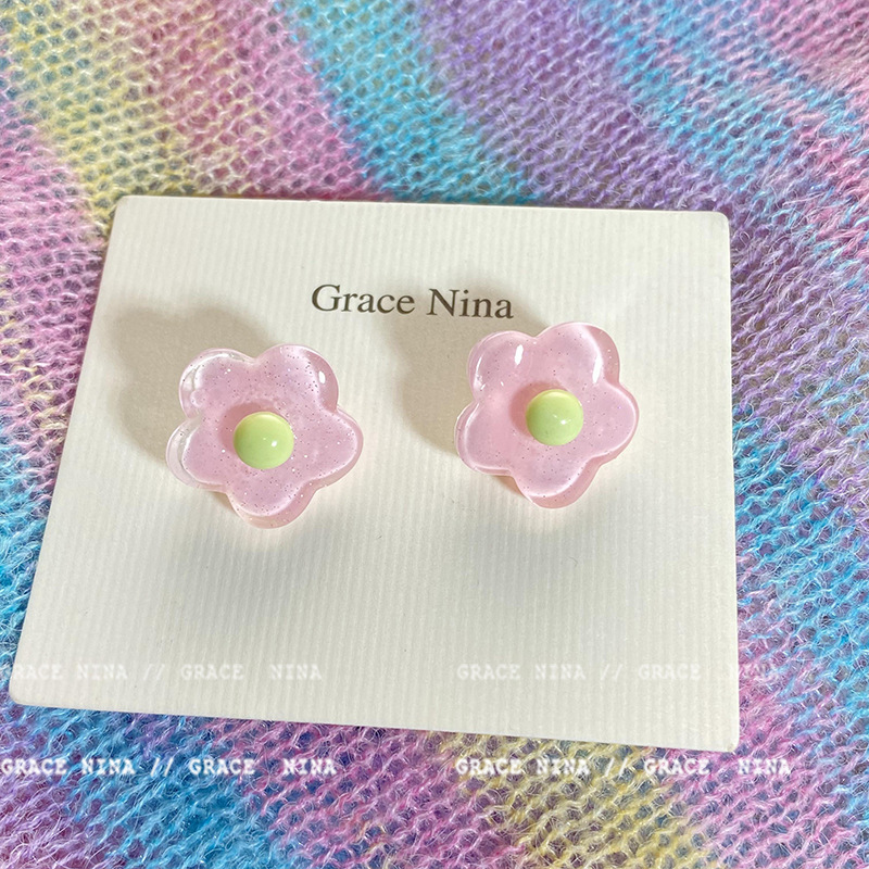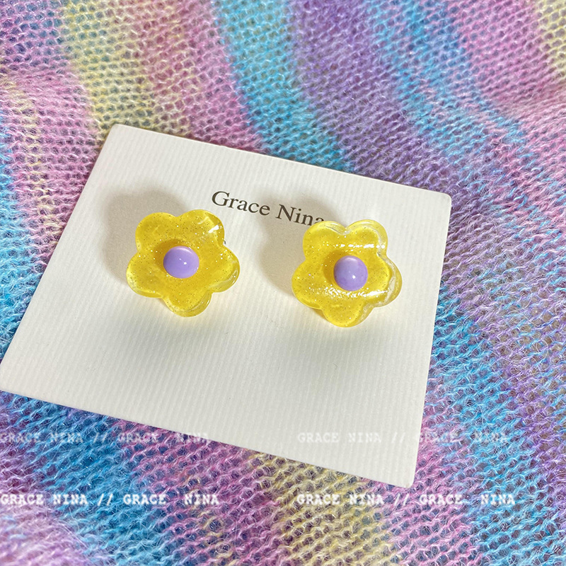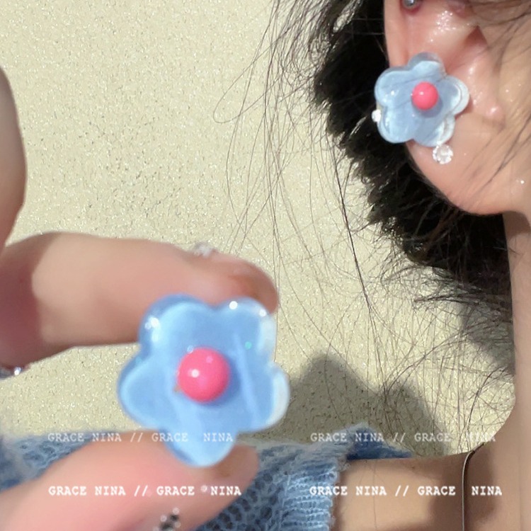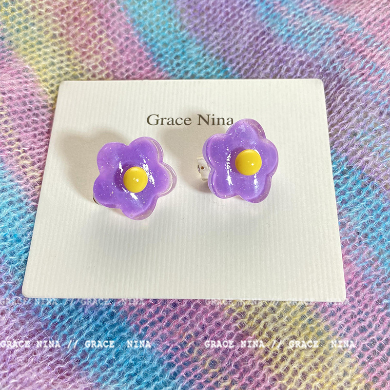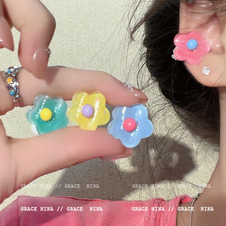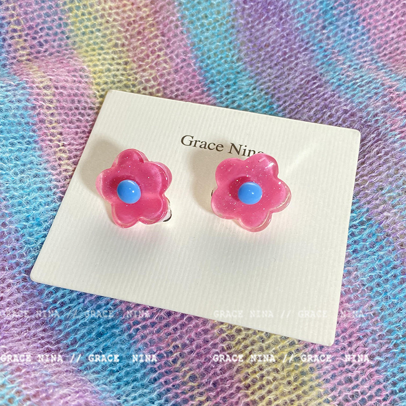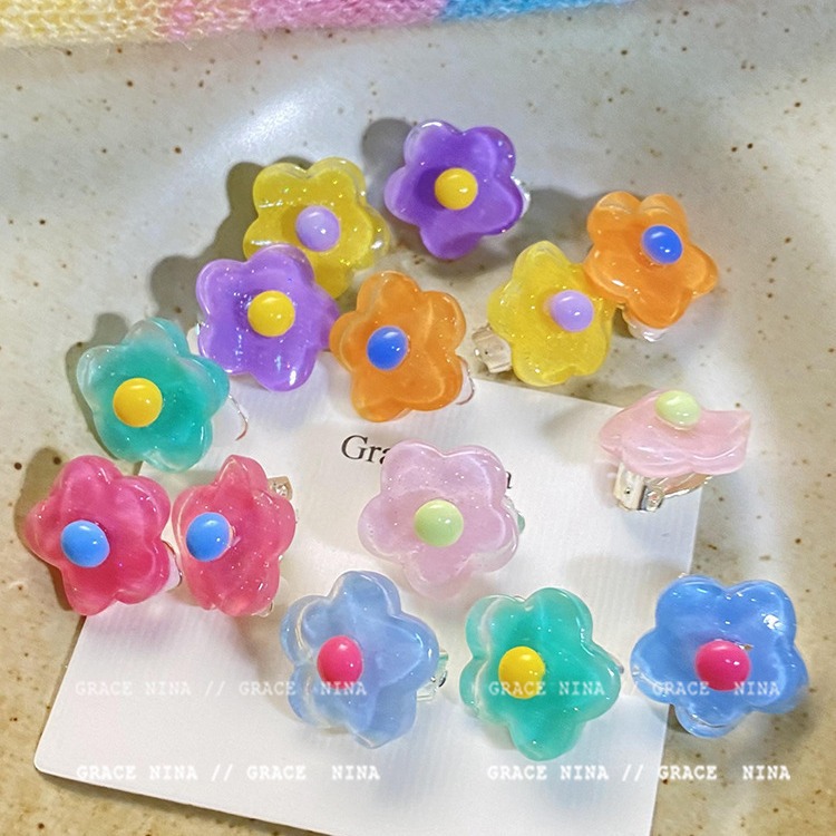 夏日涂鸦~彩色花朵耳夹女无耳洞耳饰新款爆款y2k气质甜美耳环