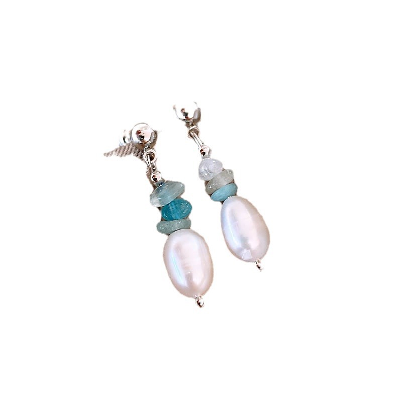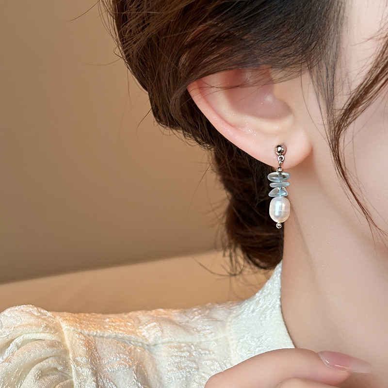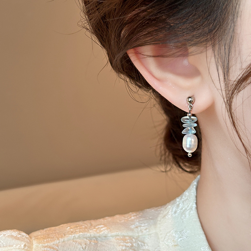 原创设计蓝色水滴天然珍珠耳钉女轻奢高级感耳环小众独特气质耳饰