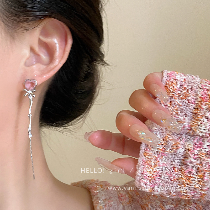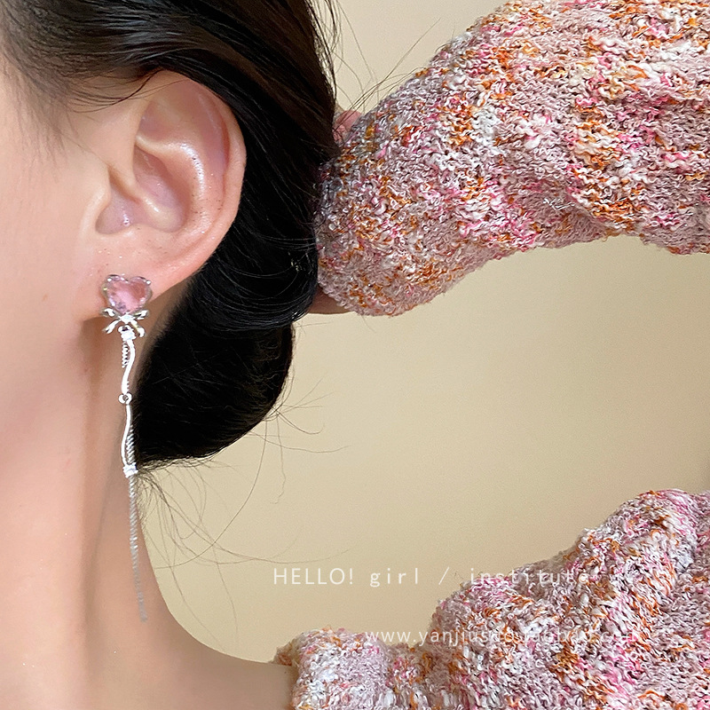 粉色爱心流苏耳坠新款爆款耳环甜美气质长款耳饰女高级感耳钉