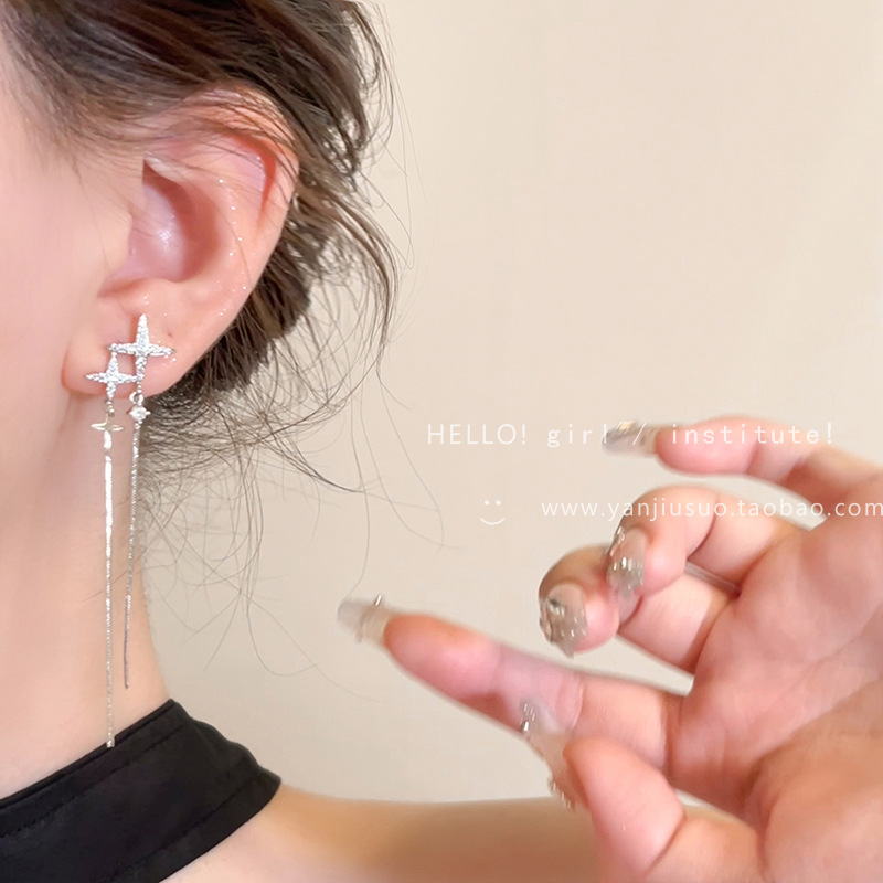 星星锆石流苏耳坠女新款爆款耳环轻奢高级感气质长款耳饰