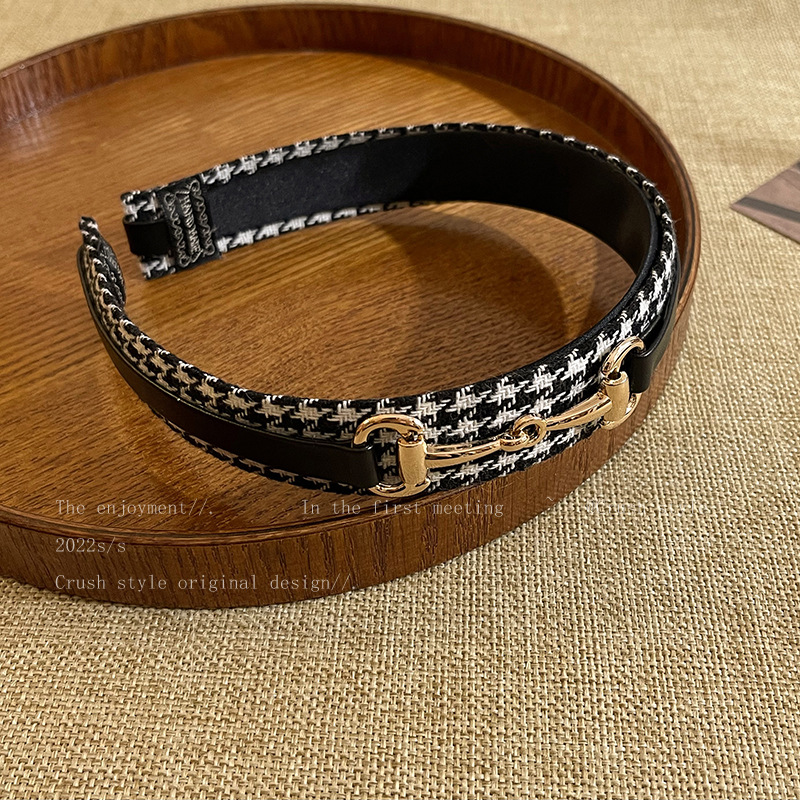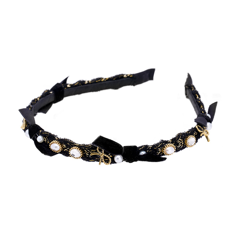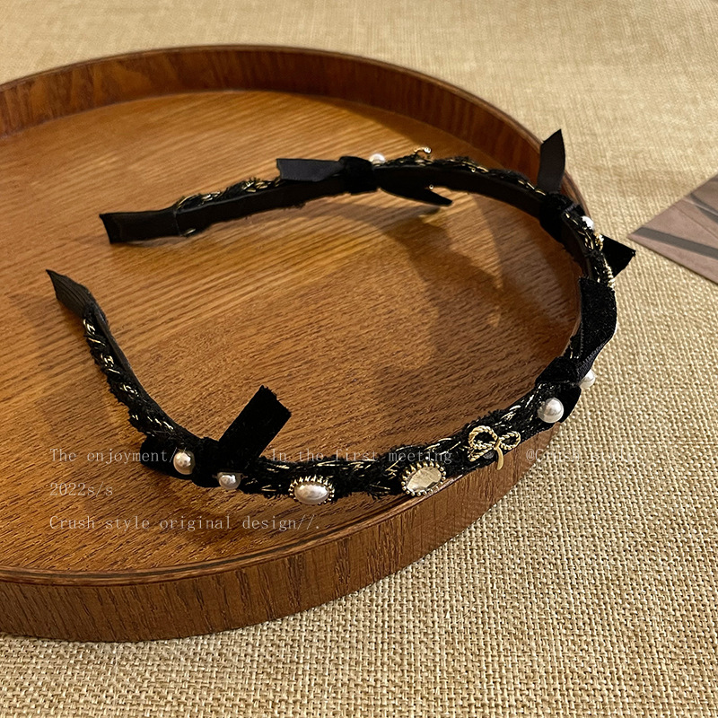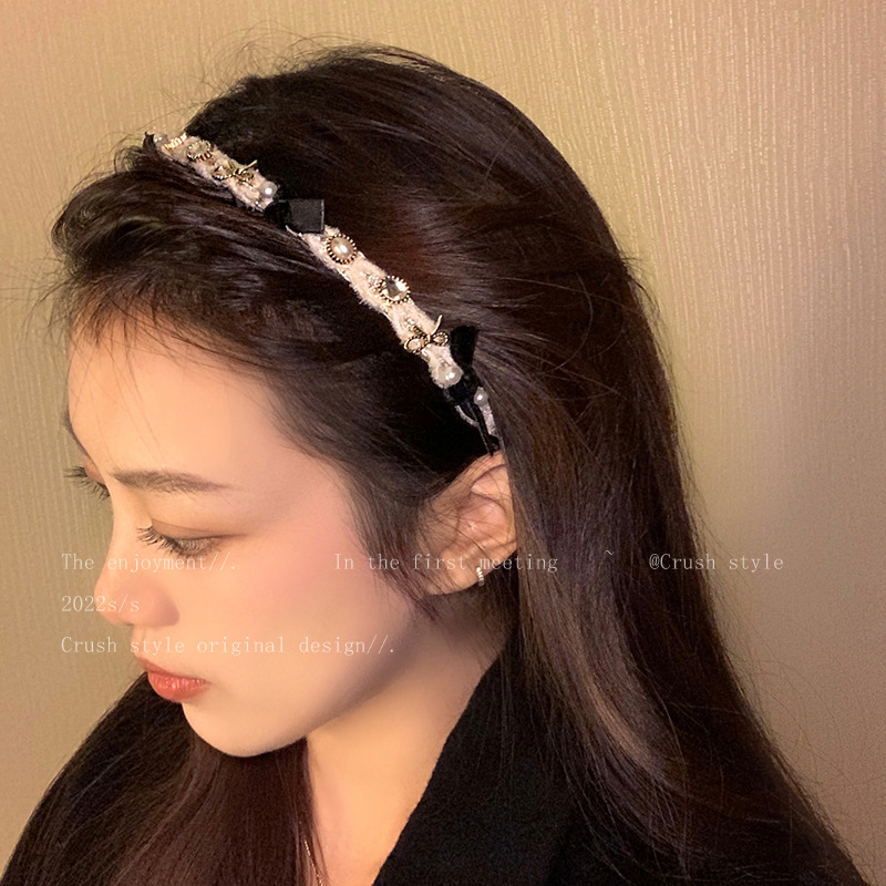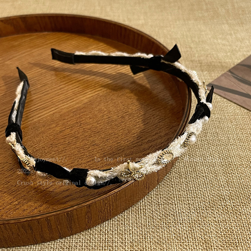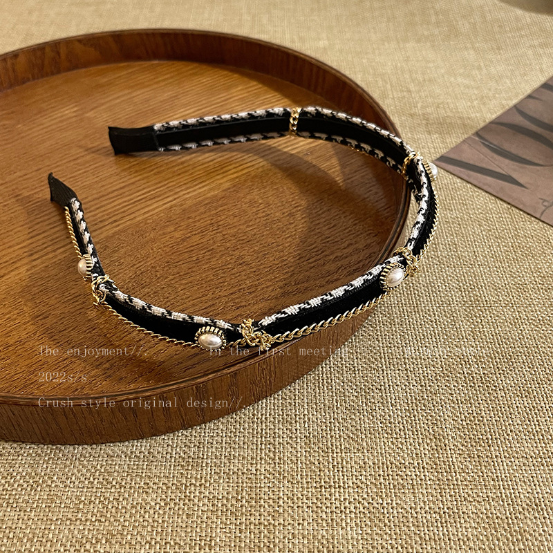 法式优雅珍珠千鸟格布艺发箍女复古高颅顶头箍高级感百搭外出发饰
