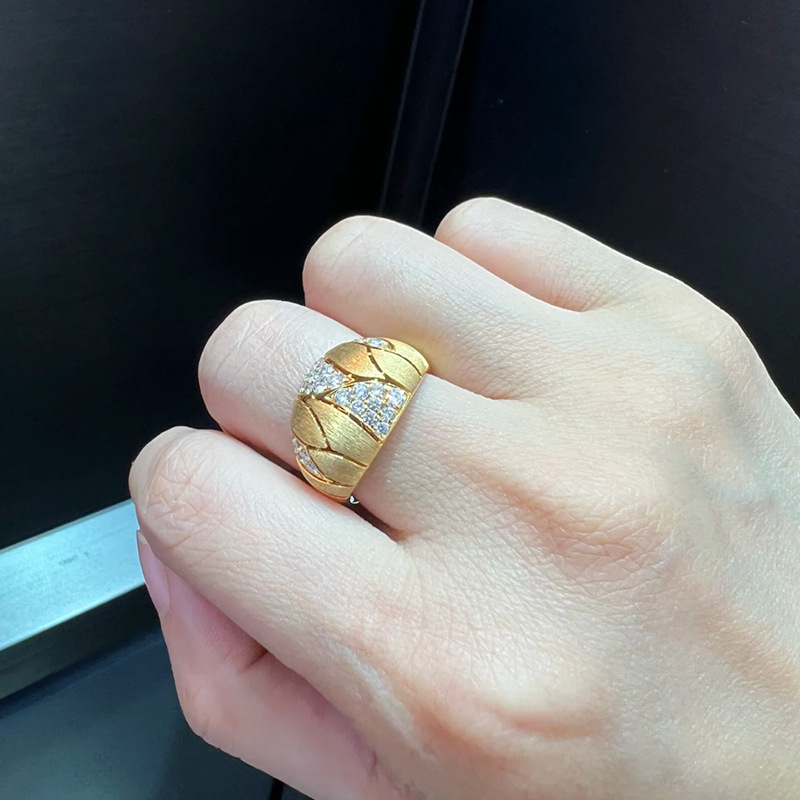 小红书爆款古法金色重工拉丝闪钻拉丝戒指2025新款时尚轻奢指环女