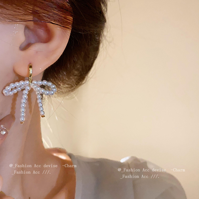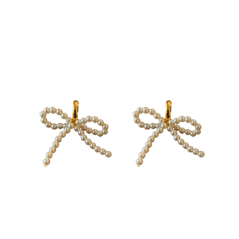 法式轻奢蝴蝶结珍珠耳扣简约时尚设计感耳环气质高级感耳饰女清爽