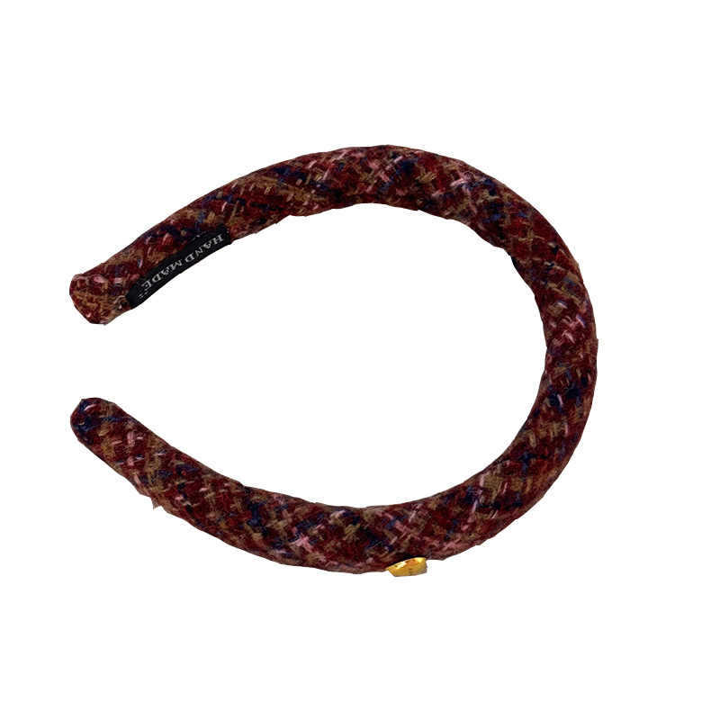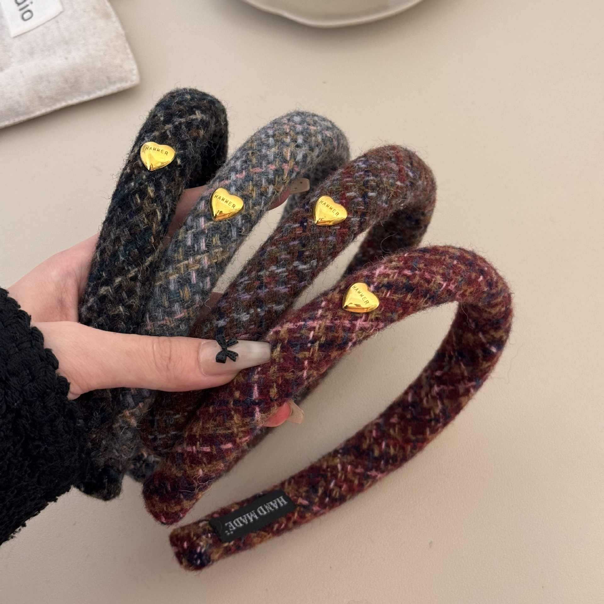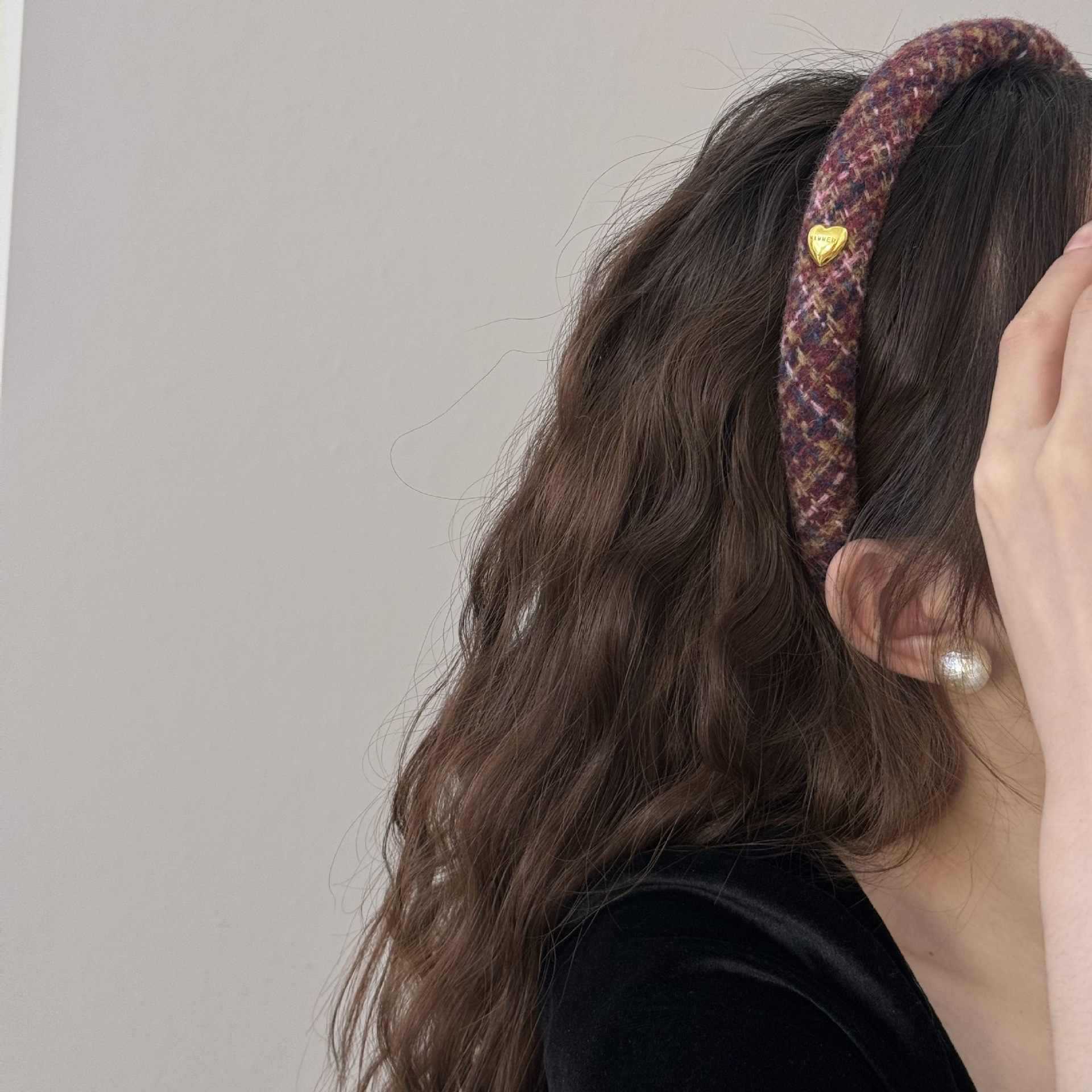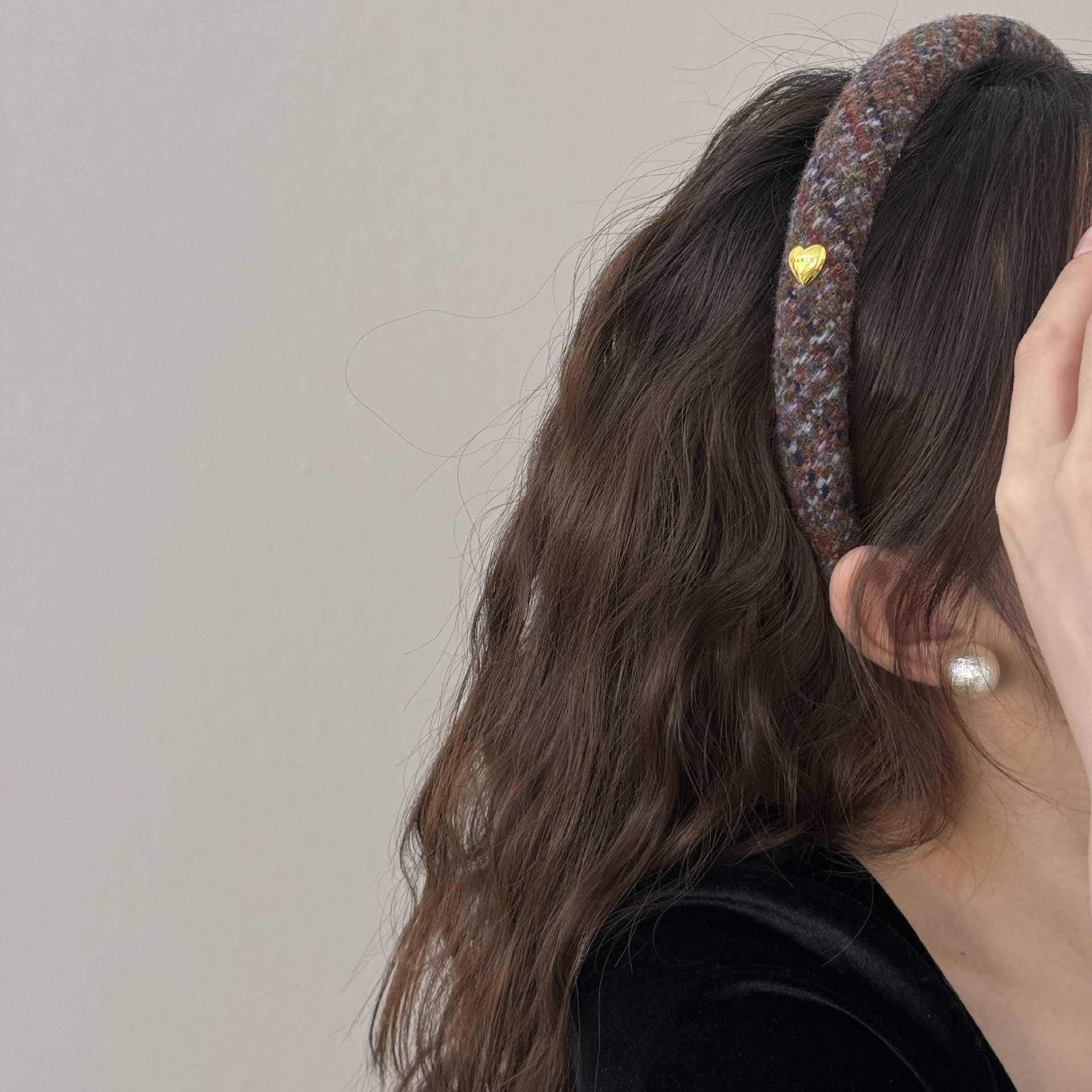 复古金扣混彩宽版发箍编织格纹头箍秋冬外出高颅顶发卡新款发饰品