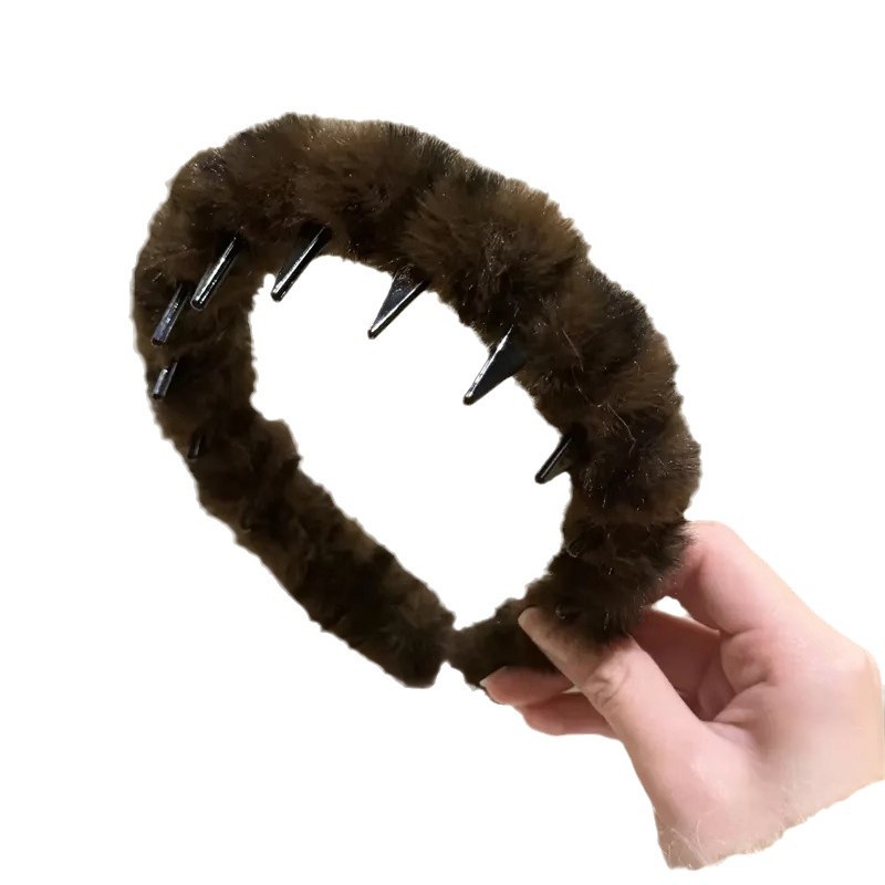 秋冬毛绒豹纹发箍带齿高颅顶小香风头箍女新款发卡高级感发捆
