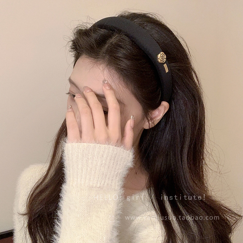 复古法式山茶花海绵发箍女新款高颅顶洗脸压发头箍高级感发饰