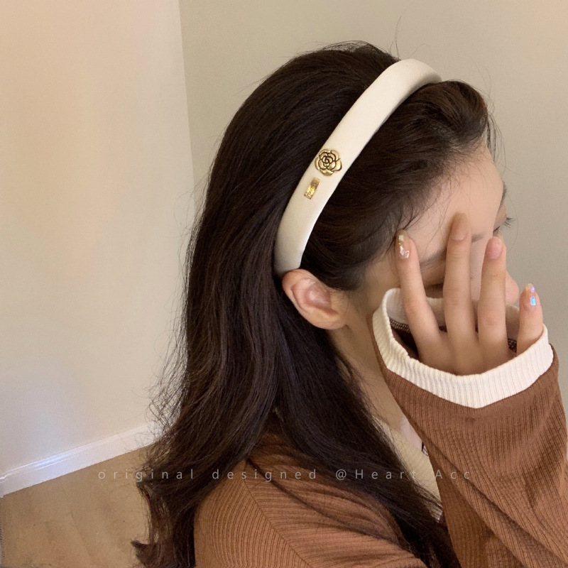 小香风~山茶花海绵发箍女高颅顶洗脸压发头箍法式复古高级感头饰