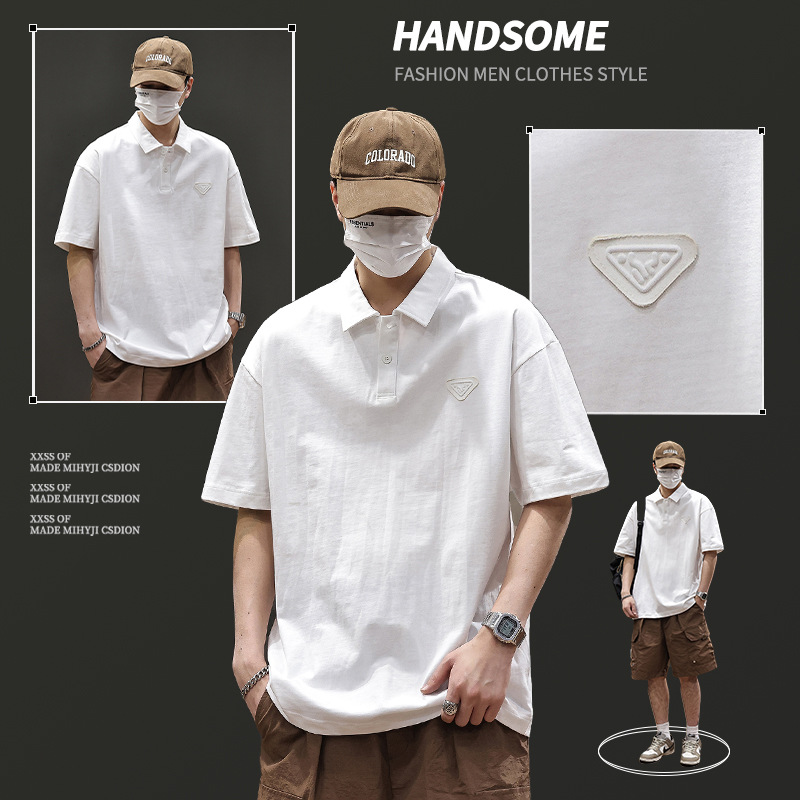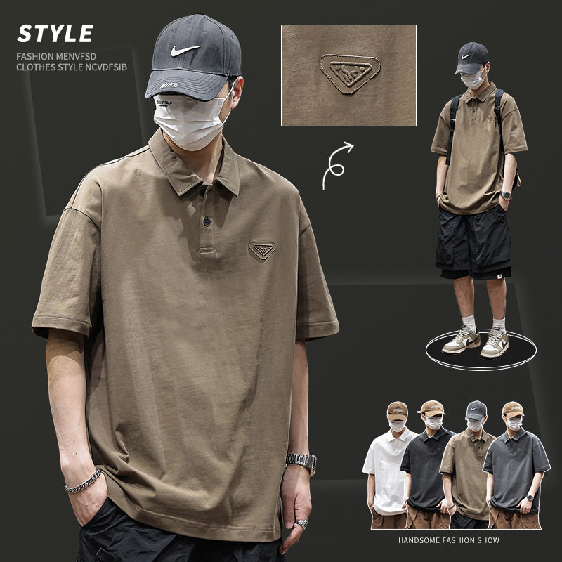 美式复古短袖t恤男2025夏季新款重磅休闲百搭潮流黑色POLO衫男士